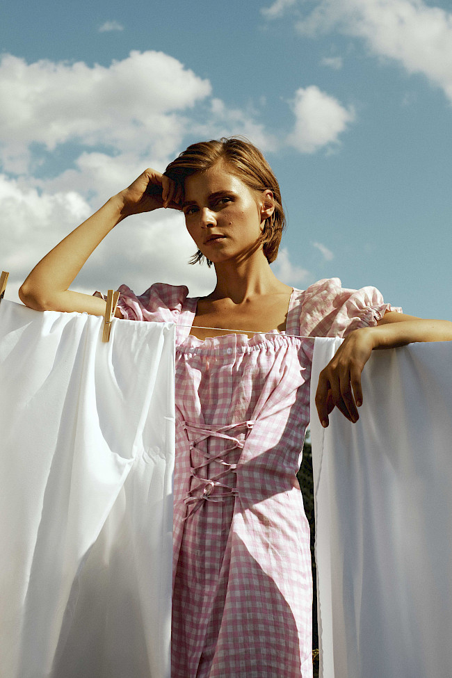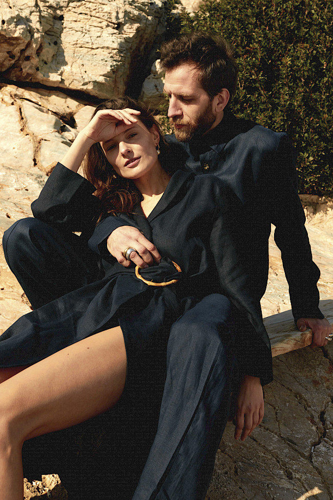 KATE AND ASYA: We’re doing our best to build a sustainable brand. We have started our sustainability journey, and since our founding in 2014 we have taken significant steps to understand our social and environmental impacts. We know we still have a lot of work ahead of us, but here are some of the things we have done so far. In principle, there is no waste in our production. We produce exactly as many clothes as we can sell. We have selected only a few fabric suppliers, which makes it fairly simple for us to control the quality of materials from which our clothes are made. We also work exclusively with certified fabric makers, which gives us the guarantee that our products are not only sustainable but also safe for our employees to work with. We even give the fabric leftovers to our cutter Anya who teaches the craft of cutting and sewing to children so they can use them while learning. We produce locally: all garments are made in the sewing studios located in our workspace. All of our garments are hand- crafted by artisans with minimal involvement of machinery, allowing us to reduce carbon emissions. It is of the utmost importance for us to ensure fair working conditions. We keep our workplaces safe, offer competitive salaries, formal employment, paid vacations and sick leave to all our employees. We hire not only experienced seamstresses, but also welcome college students by offering them internship programmes and giving sewing master classes. We are passionate about rethinking classics that never go out of style and standing for slow fashion and long-lasting designs. It’s our mission to create pieces for the long haul, which will still remain chic over the years. We also use lots of linen in our collections. Finally, we refused to use cardboard boxes and came up with an environmental alternative – multifunctional linen sacks that can be reused in everyday life.