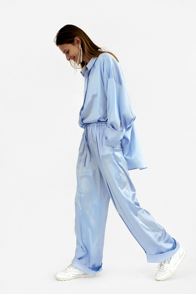 KATE: It was actually while working on this fun object — and I am not being sarcastic here — that we were inspired to create its mini version: versatile, comfortable pyjamas that would be ideal for both staying at home and going out. Comfort is the new luxury. And what can be more comfortable and multi-purpose than oversize pyjamas made from eco-friendly fabric?