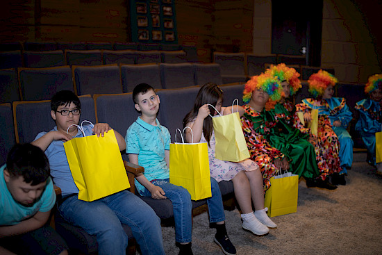 Uşaqlar qonaqları sevinclə qarşıladılar - teatrın səhnəsində mürəkkəb elementləri olan iki əyləncəli rəqs səhnələşdirildi: salto, djembe alətində ifa və bütün bunlar inanılmaz rəngarəng və qeyri-adi geyimlərdə! Çıxışdan dərhal sonra bütün uşaqlara hədiyyələr təqdim olundu və birlikdə xatirə fotosu çəkildi.