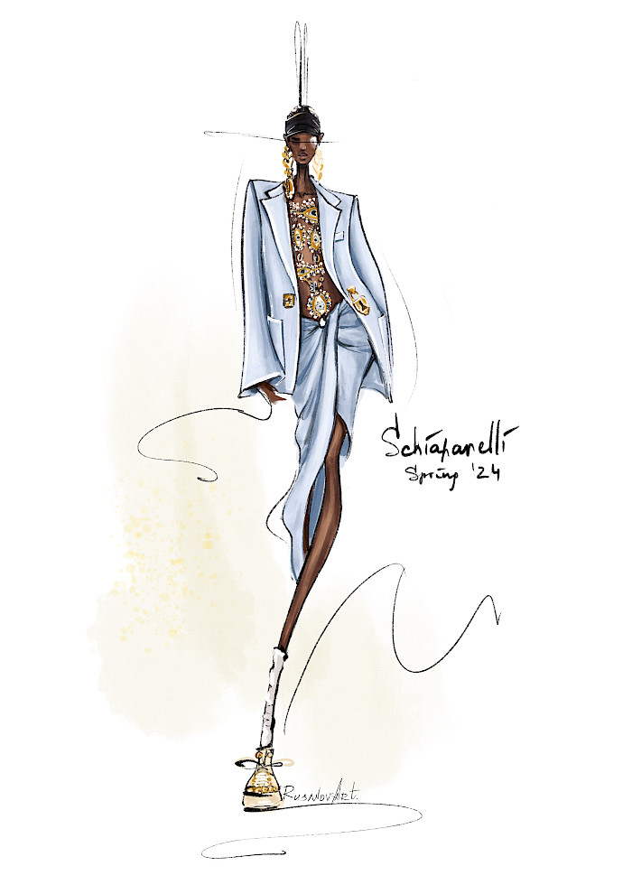 Immerse yourself in the artistic world of RusanovaArt illustrations, capturing the essence of the Spring '24 season. Witness a fusion of chic style and the whispers of spring, where each delicate stroke weaves a tale of enduring charm and captivating sophistication.