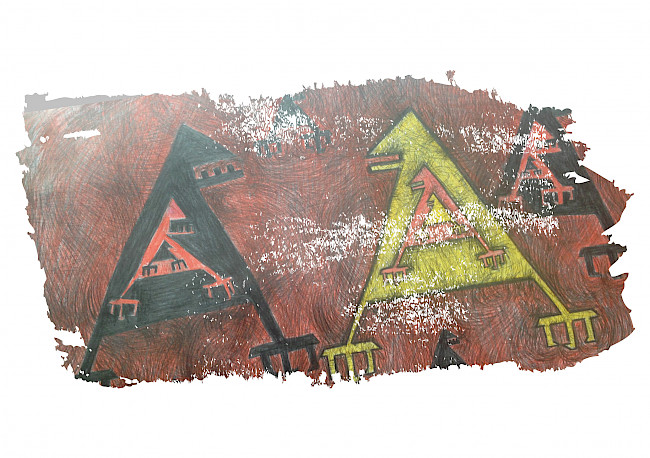 As if mystical the shaman capable of getting into other reality with a tambourine, Chingiz comes out on an untilled field of the modern art and gets started − does he do it by himself? Or he is directed by someone's unknown firm hand? – to materialize something incredible that never existed... The central figures in this transcendental story become Yin and Yang – eternal wanderers in bottomless area of powerful space, the souls exhausted by unbridled attraction to each other, by impossibility neither to exist separately, nor to become one... The giant figures, symbolizing the continuation of life on earth and the triangular mother's bosom of the essential, having taken hands, merge in a cosmic dance, resembling whether a violent fight, or a love prelude, and maybe, being both... Figure curls decorating Chingiz Babayev's works are not only letters from the past, but also cosmic signals from the future. In these ornaments, the great mystery of creation is encrypted, and the male and female designations covering the pile surface are captured frozen in a single moment separating them from immersion in a bunch of chaos.