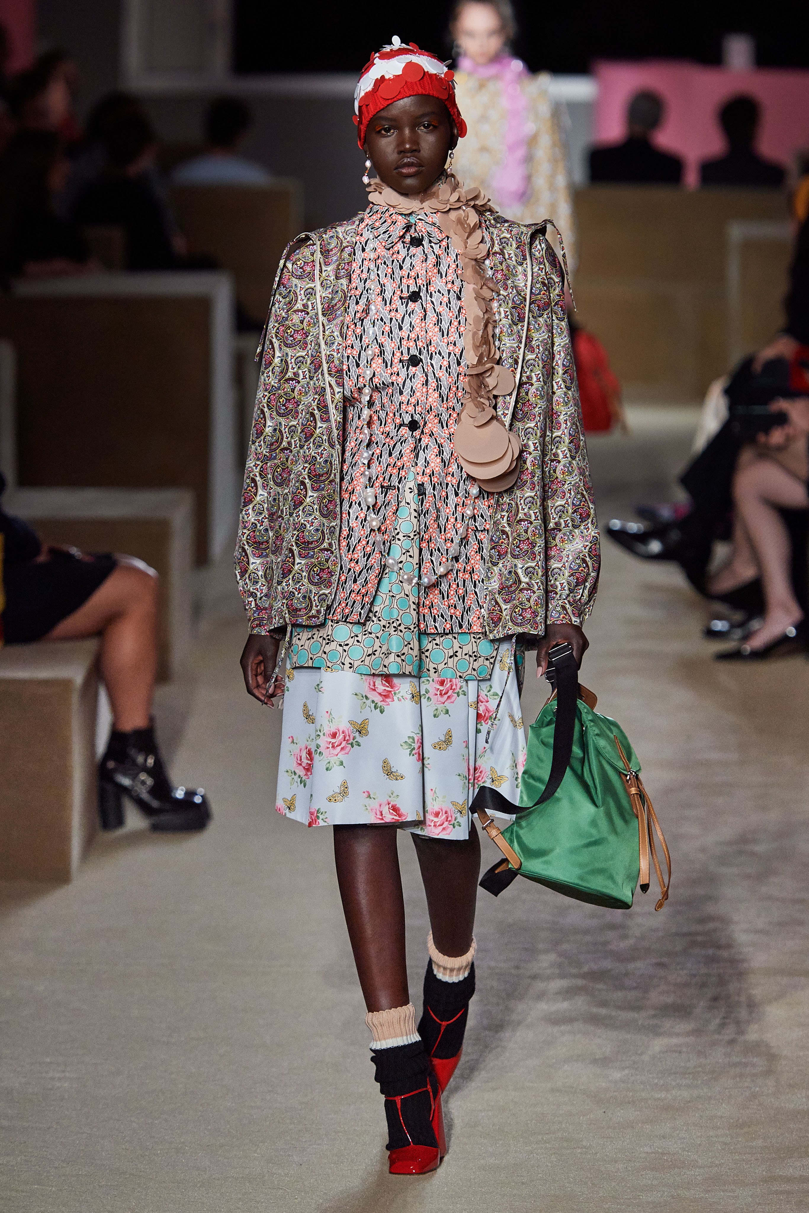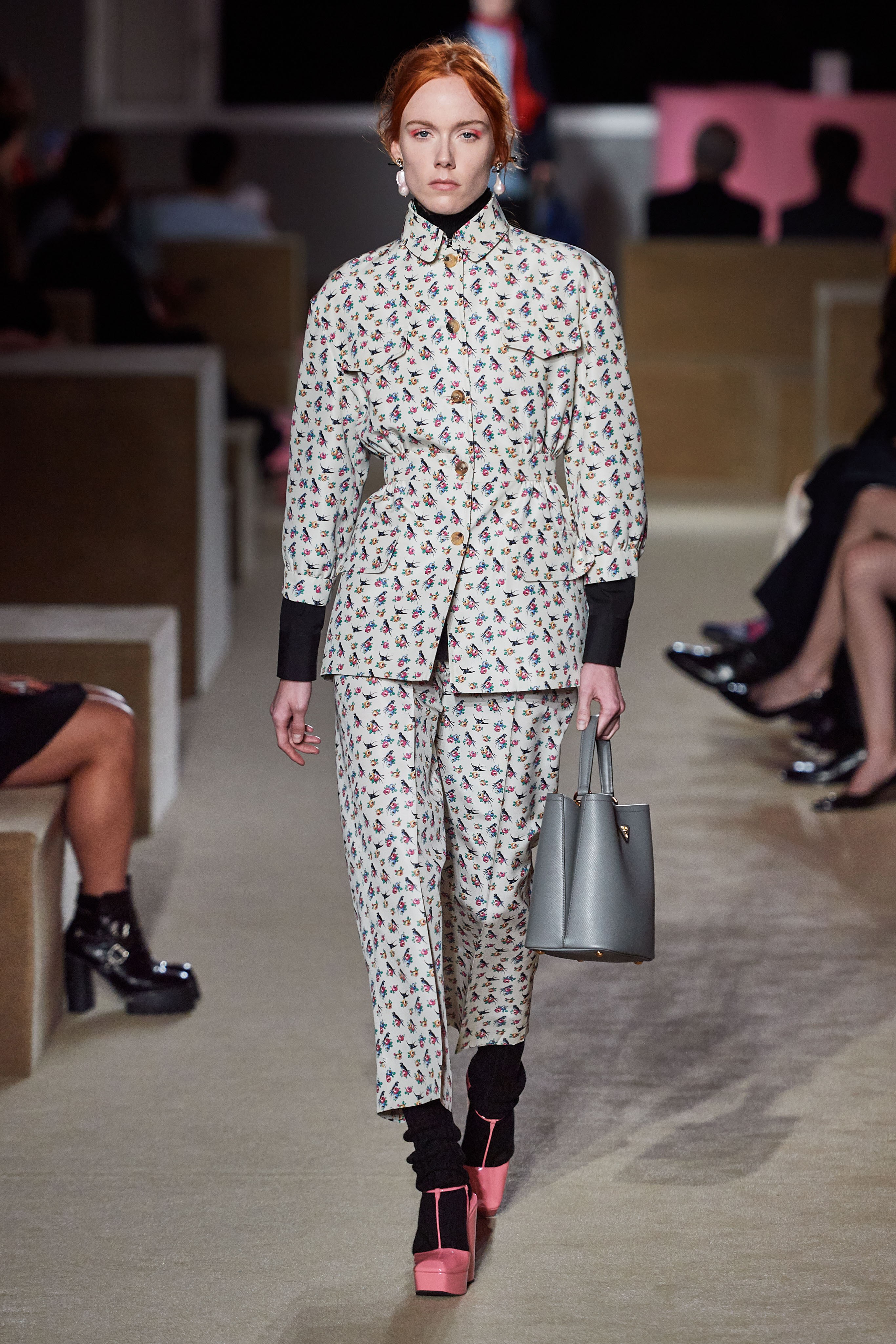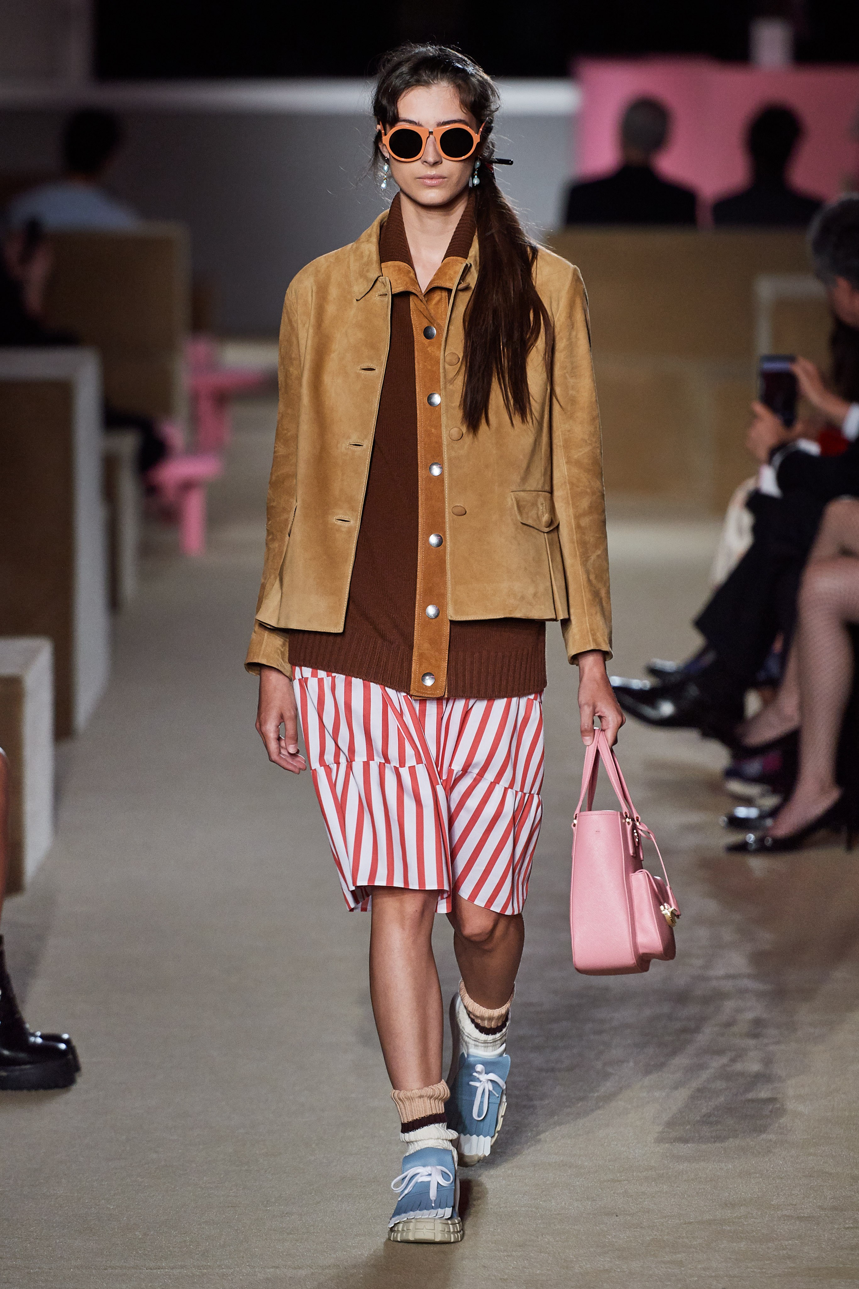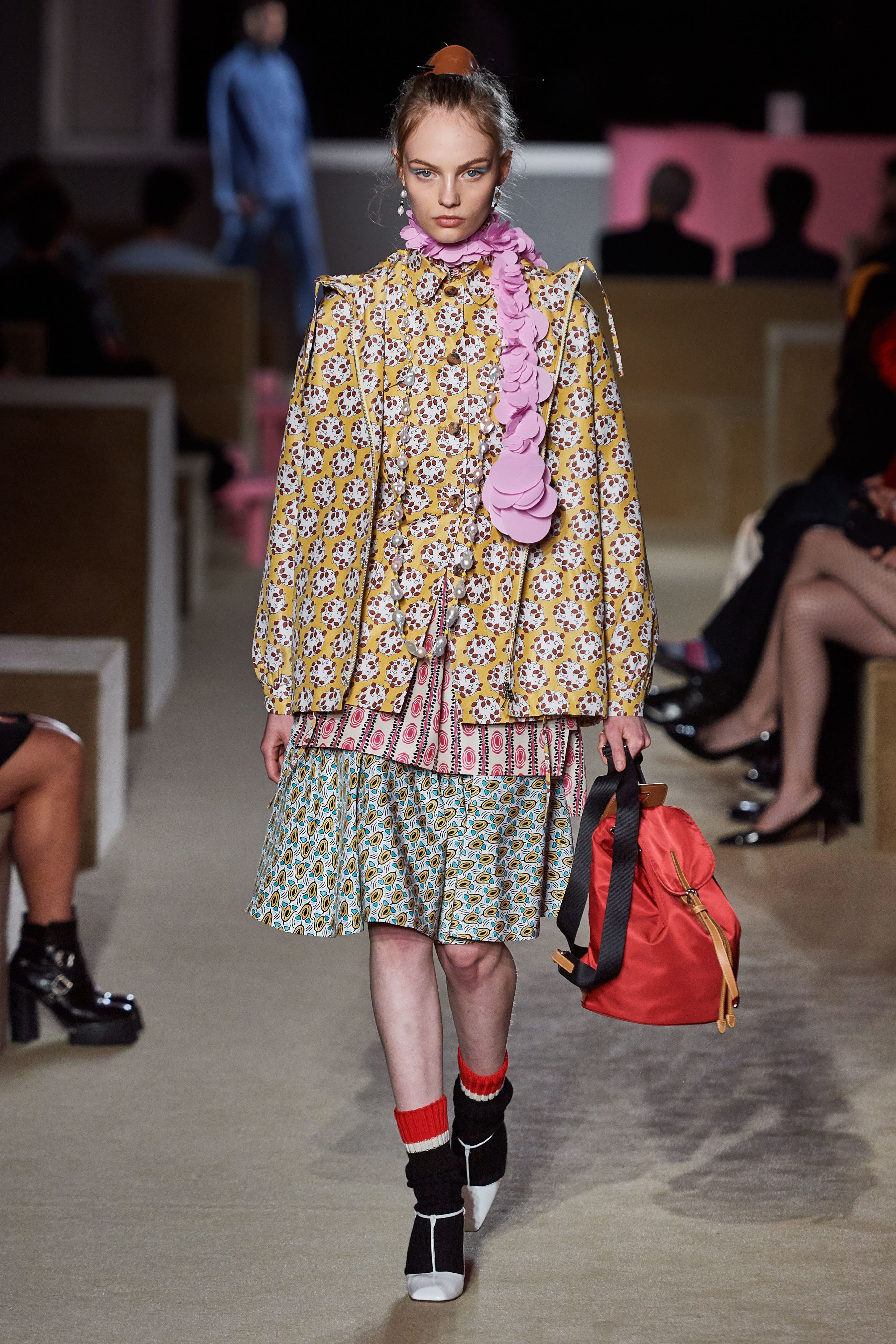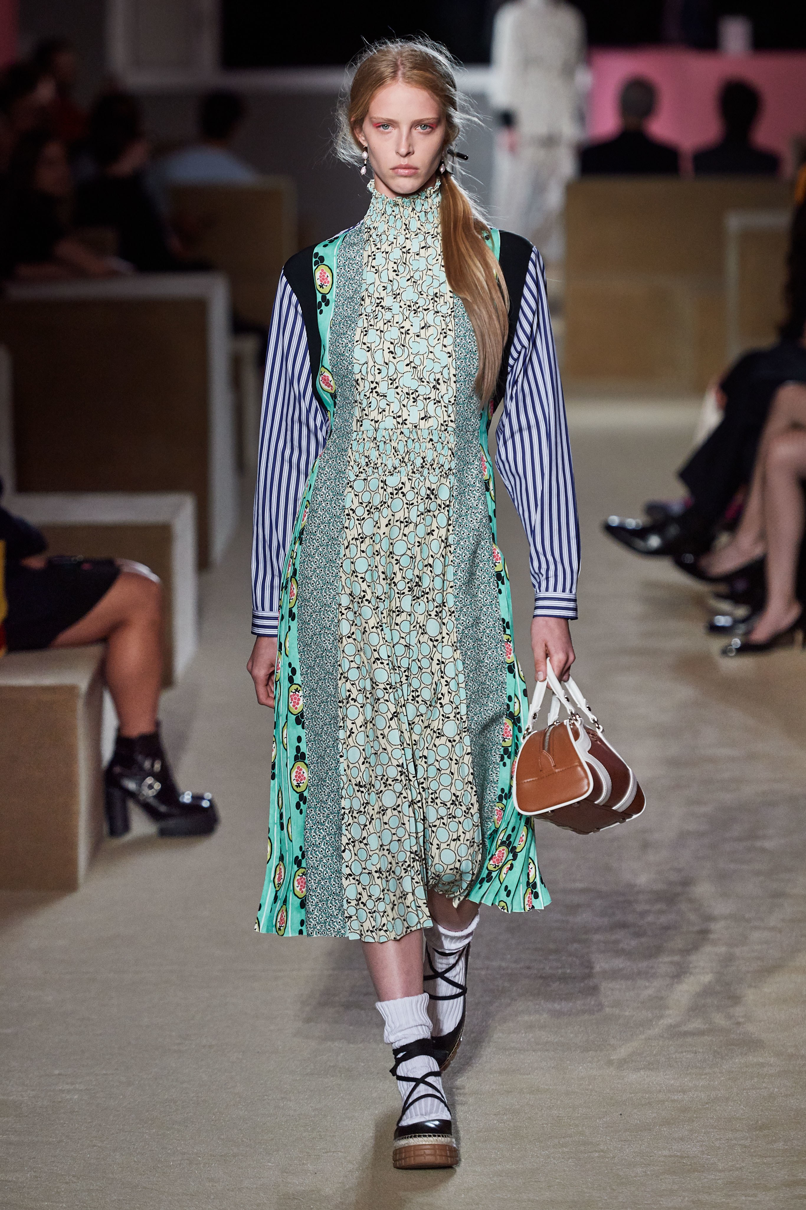 2 May, Uma Thurman with her son, Elle Fanning, Diane Kruger and others have arrived to piano factory on the west-end of Manhattan for the Prada Resort 2020 show. Real, naive, and “the opposite of pretentious” is how Miuccia Prada described her collection. This season the designer mainly worked with cotton. Her new collection included the peasant blouses with hand-embroideries, calco print jackets and matching pants and a lot of striped clothes.This simplicity is like a breath of fresh air. All the more the show went down on the opening day of the New York Frieze Art Fair, which is full of difficult modernist decisions and ideas.