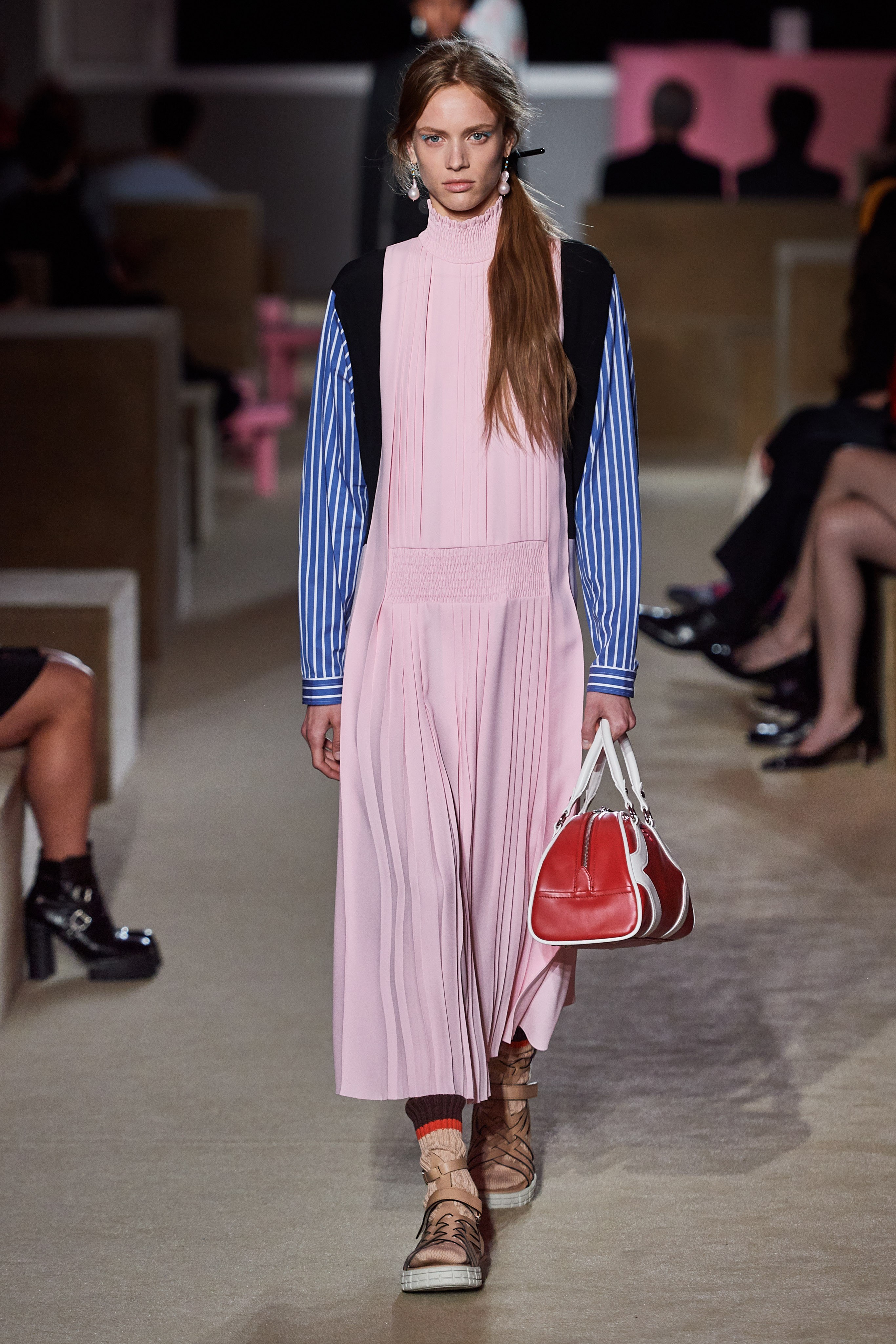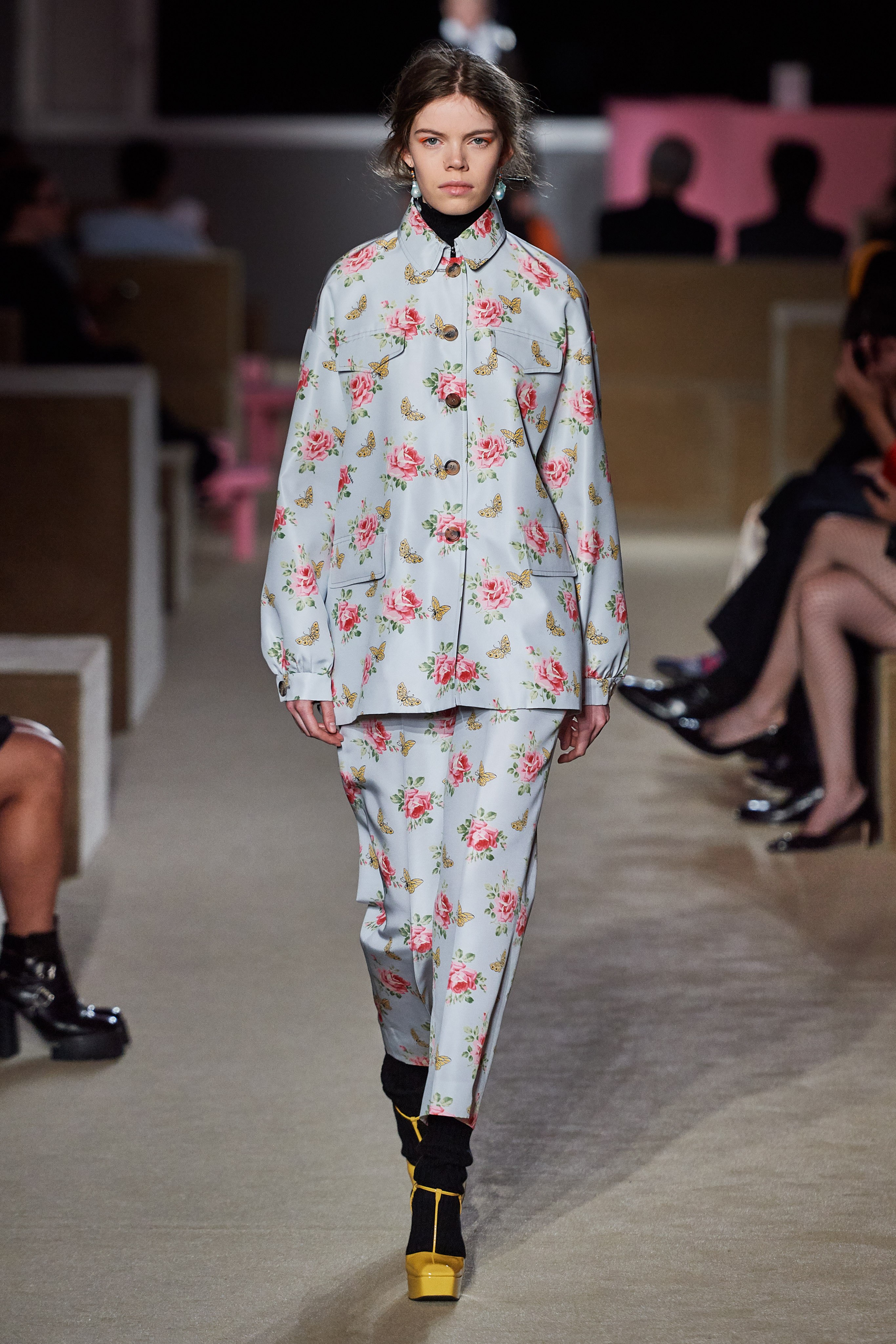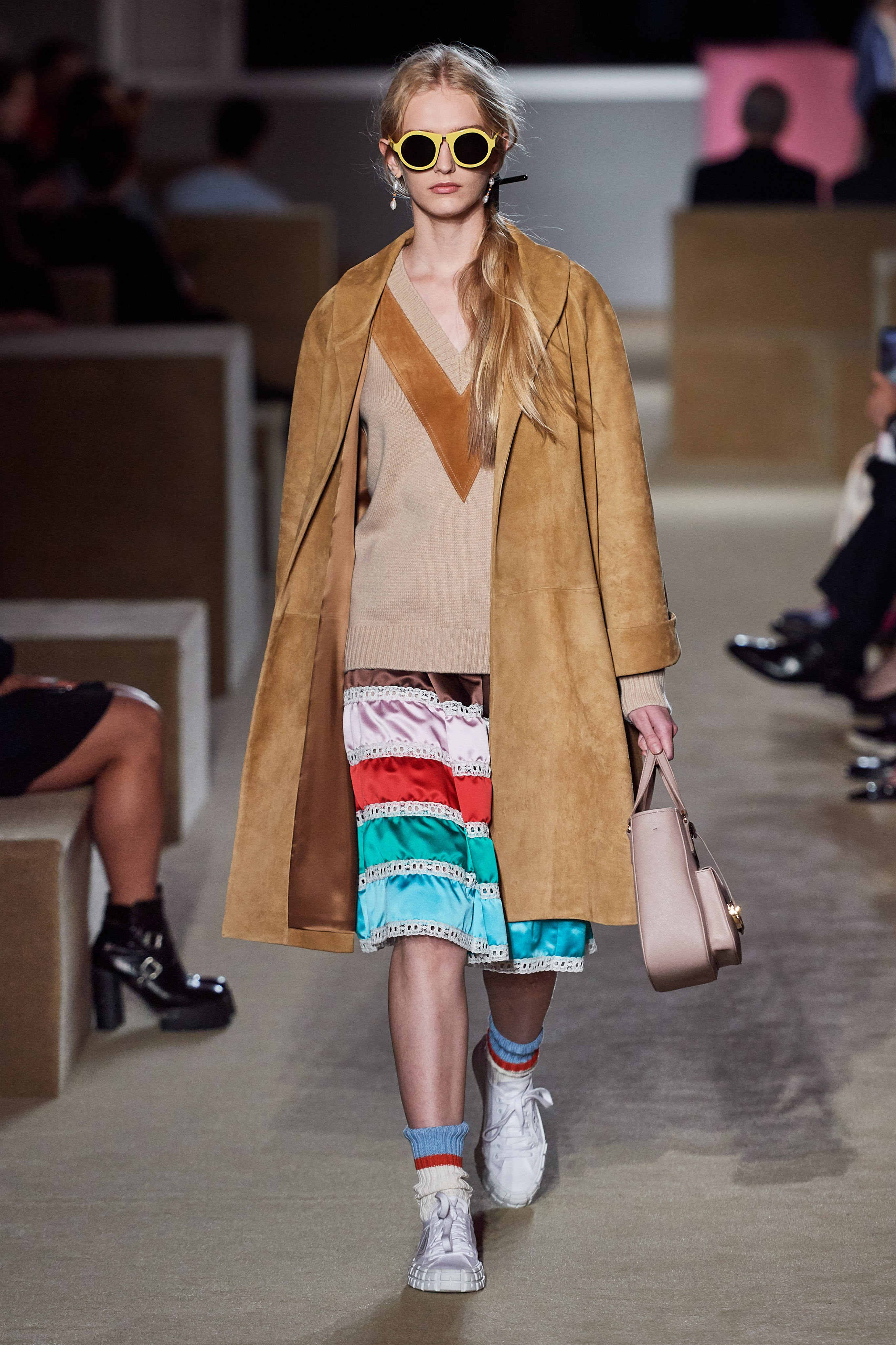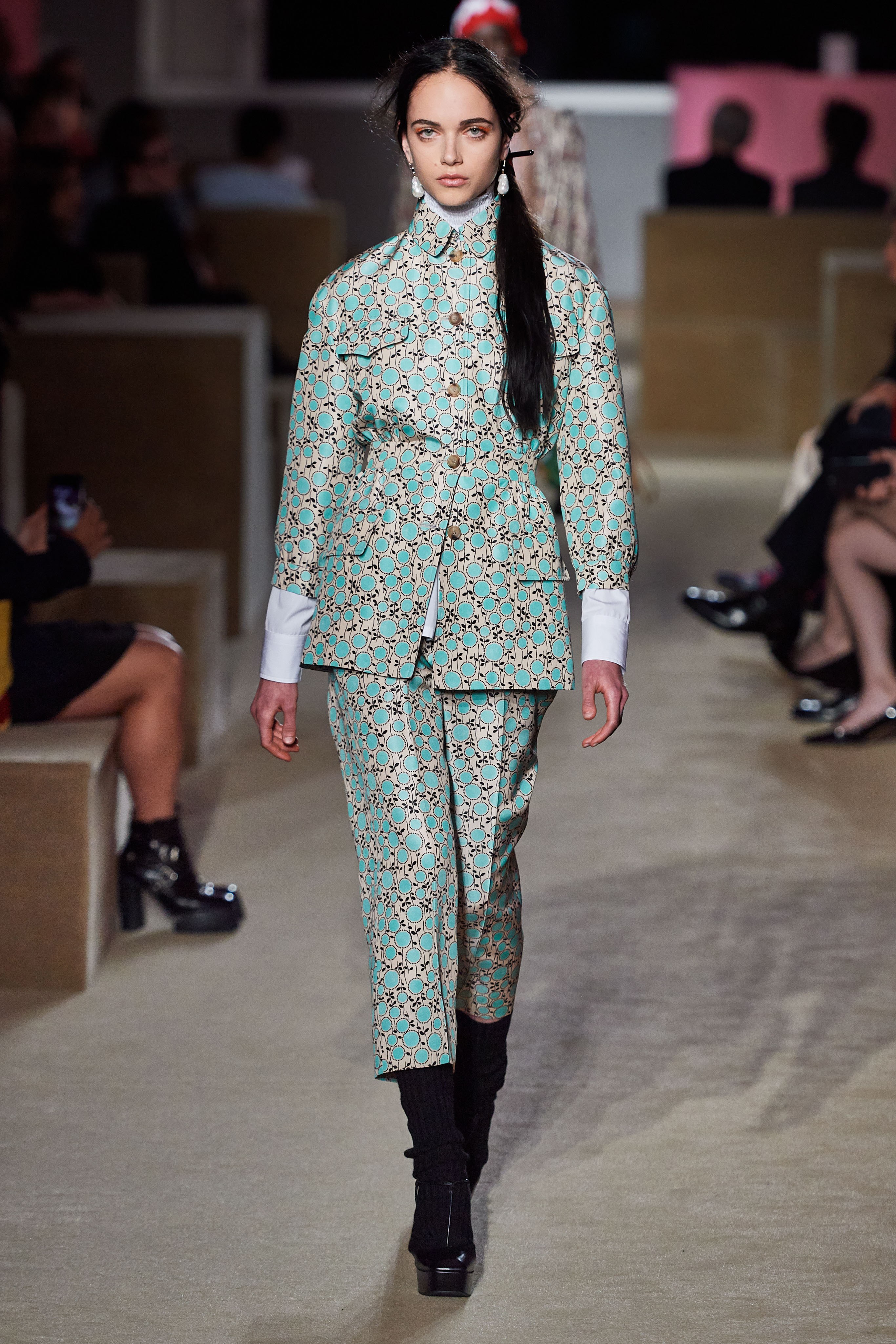 2 May, Uma Thurman with her son, Elle Fanning, Diane Kruger and others have arrived to piano factory on the west-end of Manhattan for the Prada Resort 2020 show. Real, naive, and “the opposite of pretentious” is how Miuccia Prada described her collection. This season the designer mainly worked with cotton. Her new collection included the peasant blouses with hand-embroideries, calco print jackets and matching pants and a lot of striped clothes.This simplicity is like a breath of fresh air. All the more the show went down on the opening day of the New York Frieze Art Fair, which is full of difficult modernist decisions and ideas.