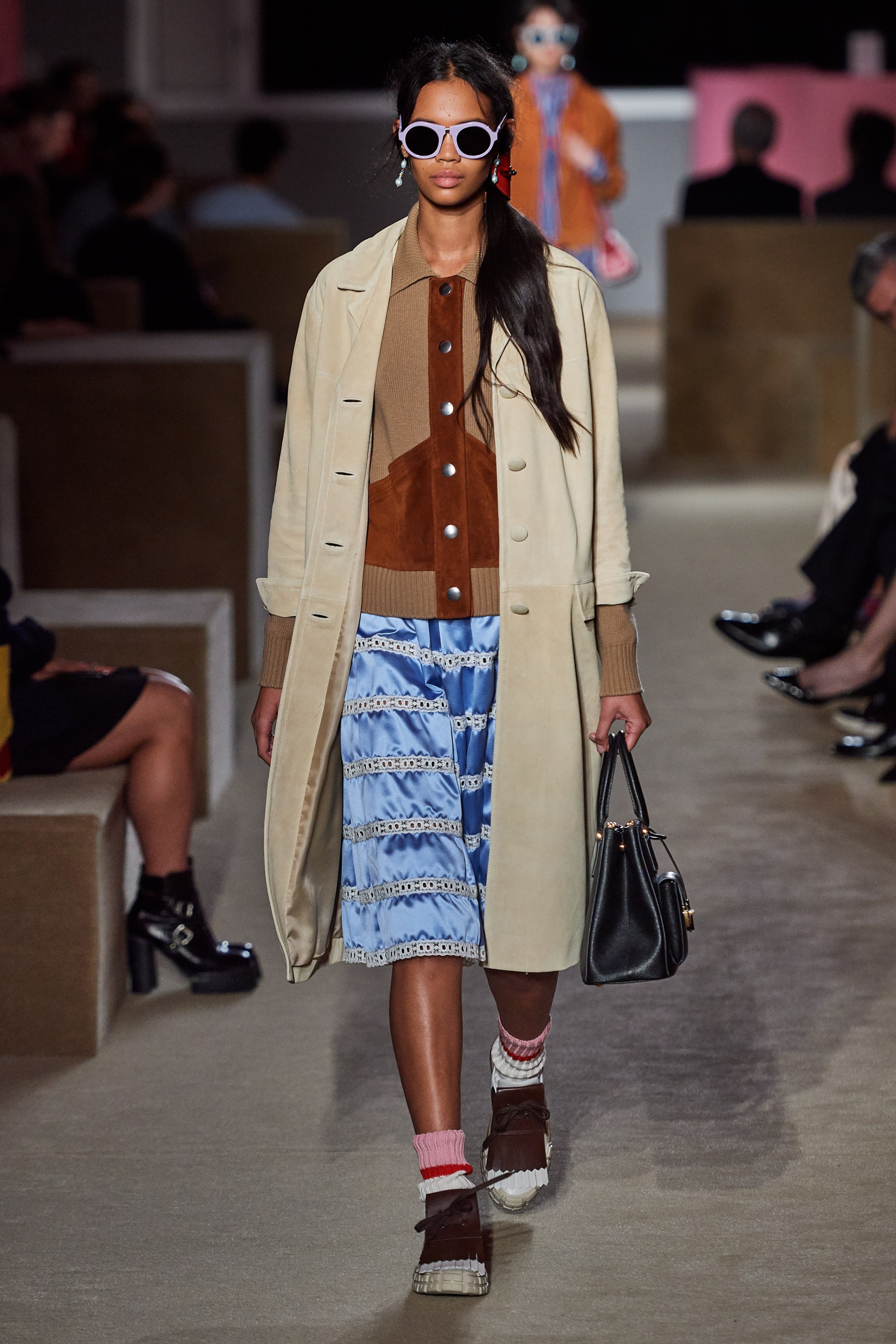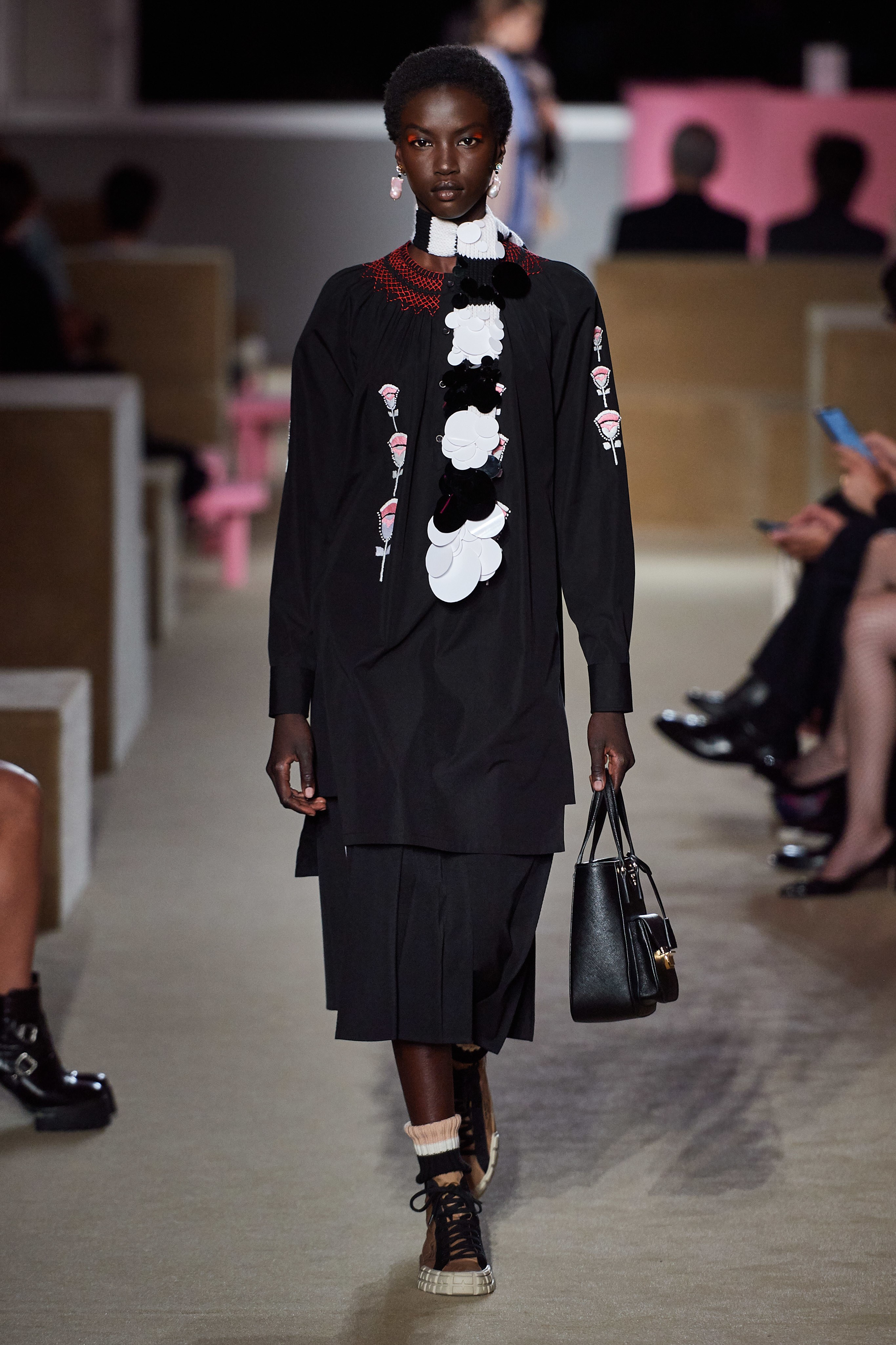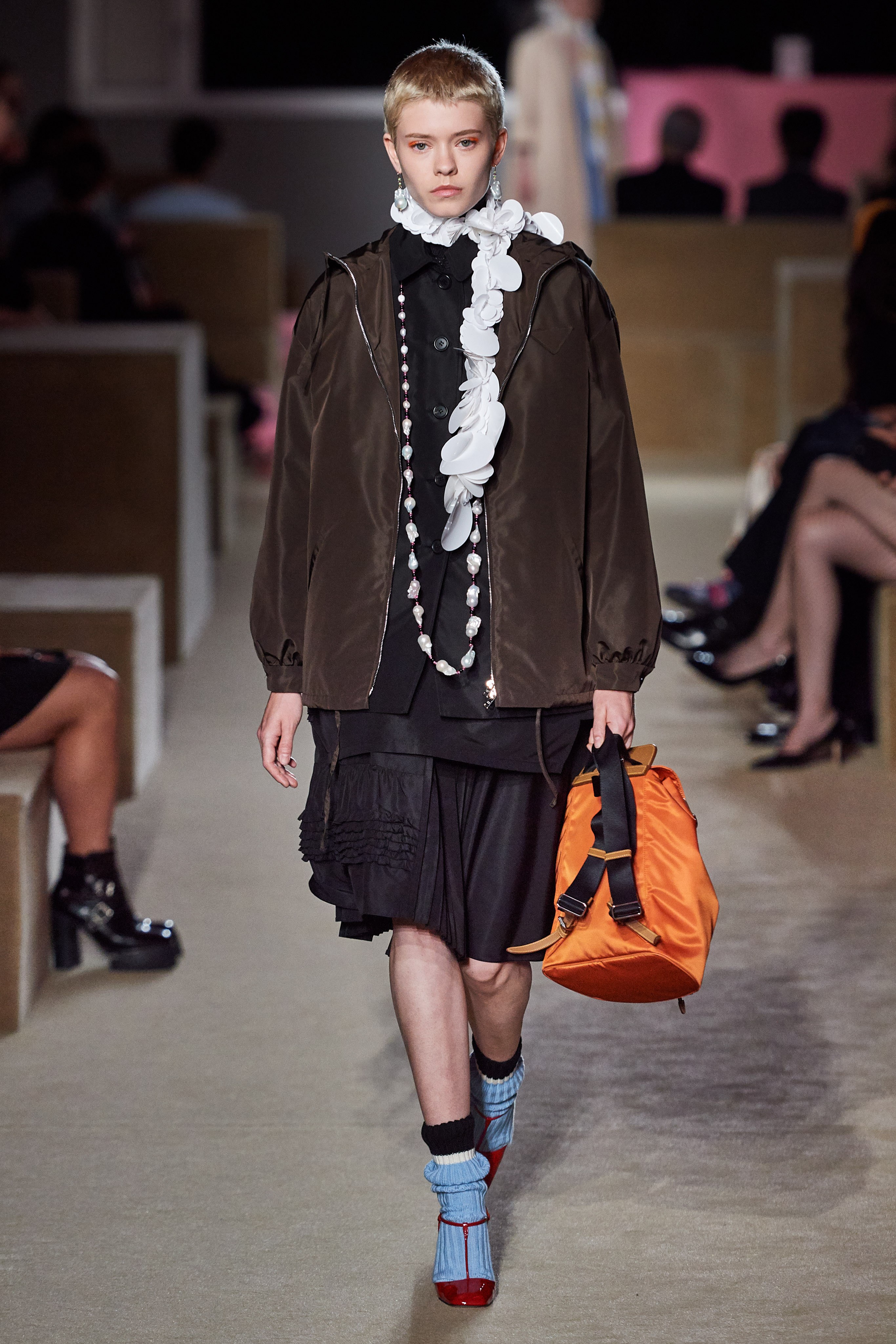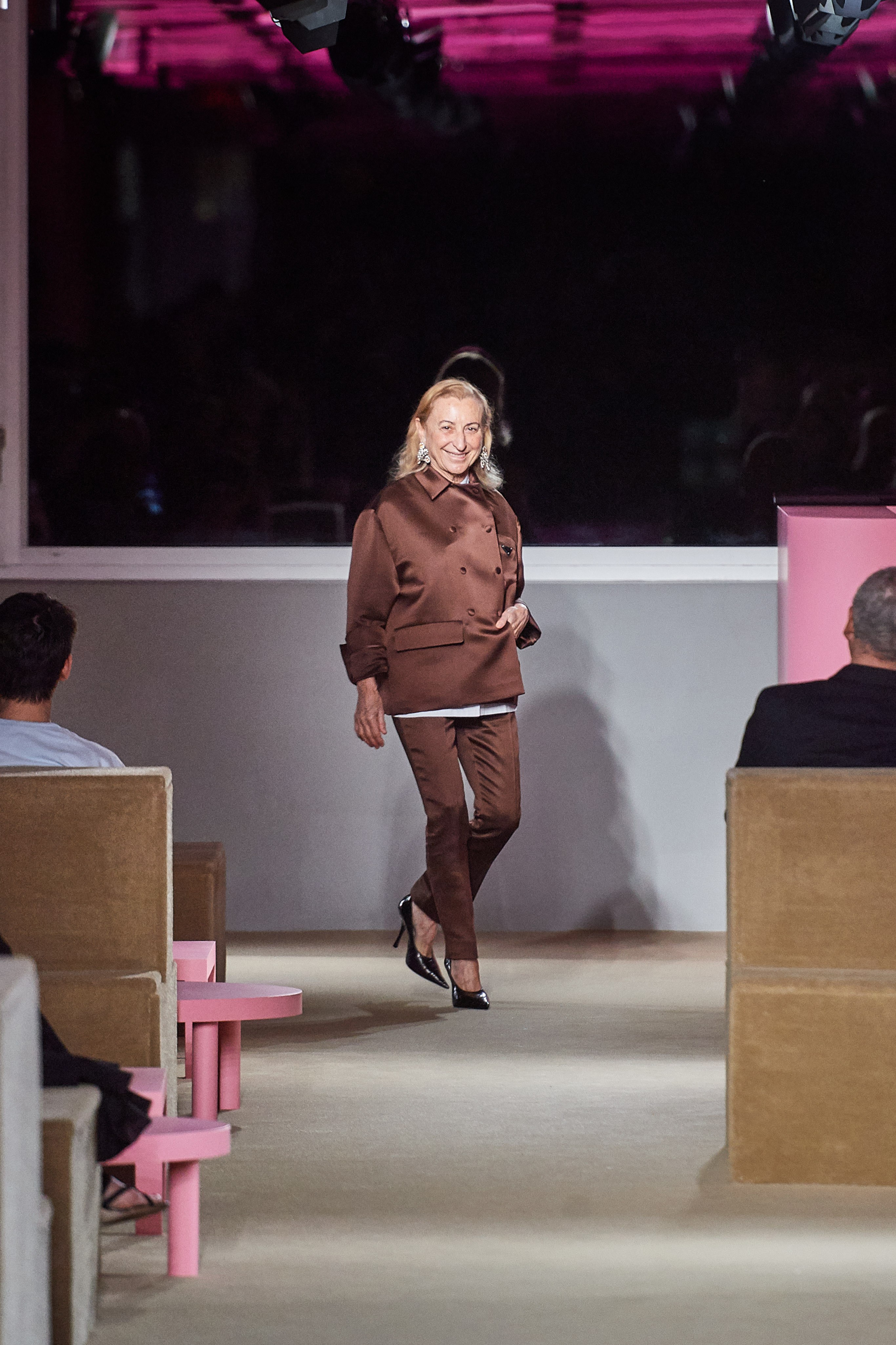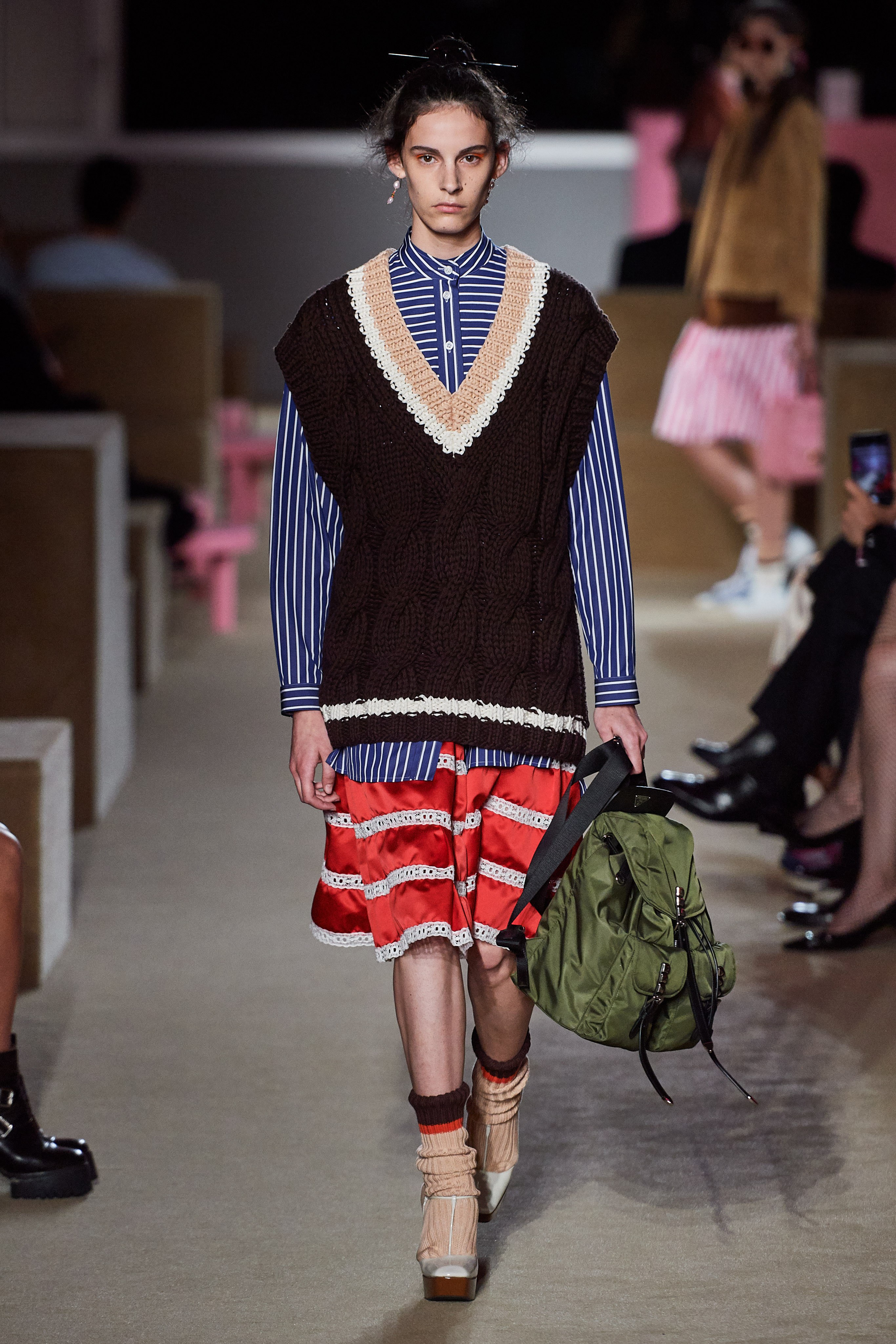 2 May, Uma Thurman with her son, Elle Fanning, Diane Kruger and others have arrived to piano factory on the west-end of Manhattan for the Prada Resort 2020 show. Real, naive, and “the opposite of pretentious” is how Miuccia Prada described her collection. This season the designer mainly worked with cotton. Her new collection included the peasant blouses with hand-embroideries, calco print jackets and matching pants and a lot of striped clothes.This simplicity is like a breath of fresh air. All the more the show went down on the opening day of the New York Frieze Art Fair, which is full of difficult modernist decisions and ideas.