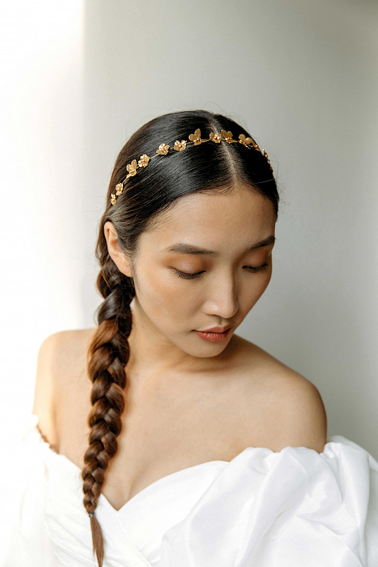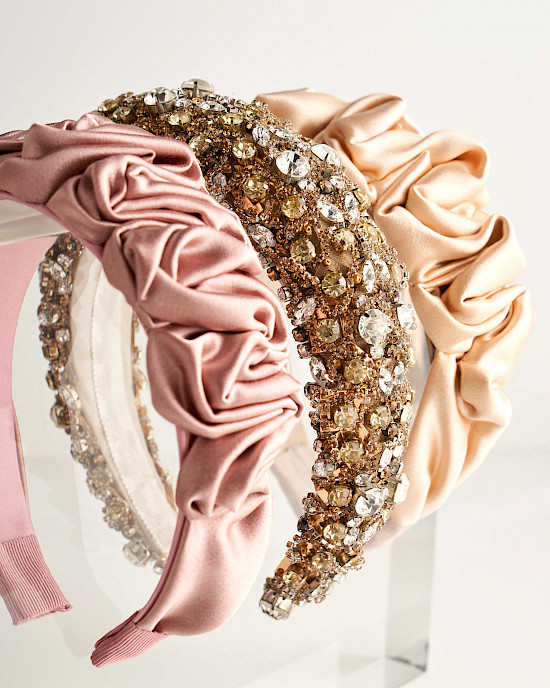 Generally speaking we say “modern romantic.” But I do believe most women have a pretty diverse wardrobe now, myself included, so we have a wardrobe of headband offerings to match that. Everything from architectural vegan leather pieces to embroidered flowers to delicate pearls and sleek silks.