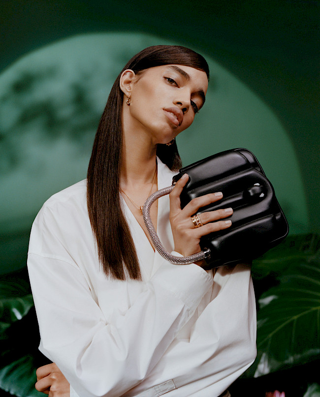 Jewelry house Bvlgari introduced a new limited collection of bags and accessories in collaboration with the fashion-forward Japanese brand Ambush. Designer Yoon Ahn took a new look at the design of bags from the Serpenti line and created an avant-garde interpretation with soft shapes inspired by the natural grace of the snake. The collection includes bags with a short handle, belt bags, heart-shaped clutches-minodiers and bright pink, green, sky blue and black nappa leather bracelets. The most famous snake in the world – Serpenti clasp – has been completely transformed, and the sparkling metal logo BVLGARI AMBUSH completes the design of bags with notes of glam rock.