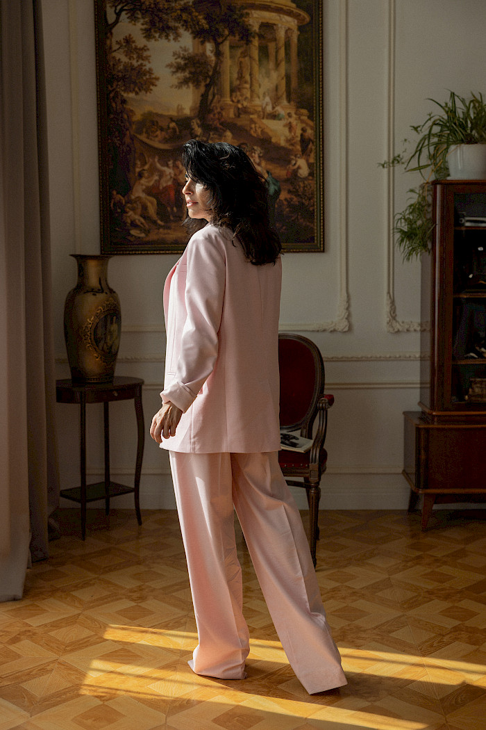 Top and pants DOLCE & GABBANA, jacket SAINT LAURENT, belt CHANEL, jewellery COPINE
