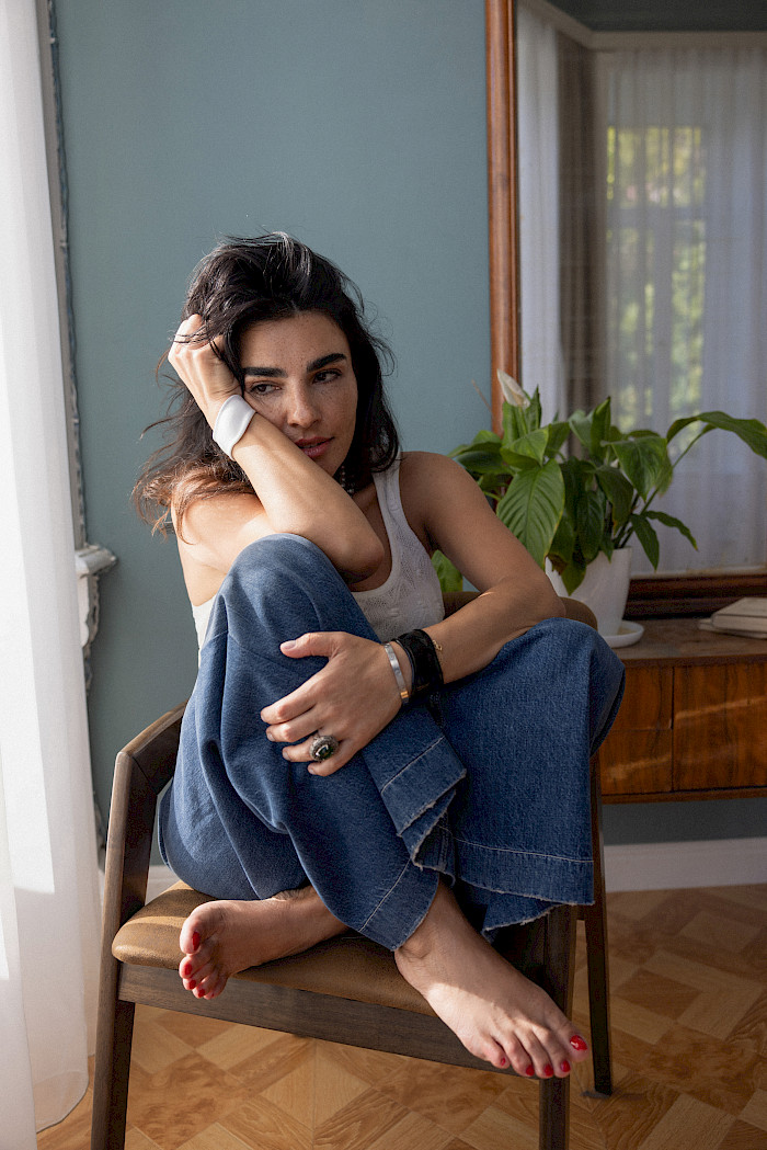 Top CHANEL, jeans DOLCE & GABBANA, bracelets TIFFANY & CO.