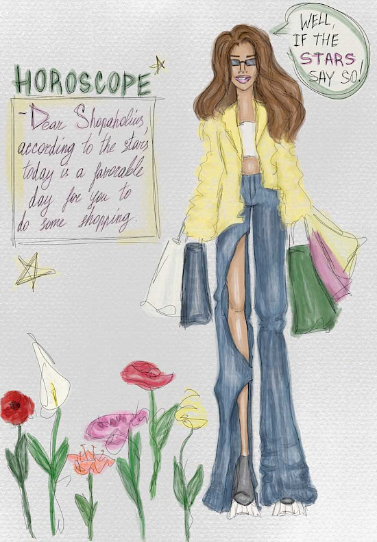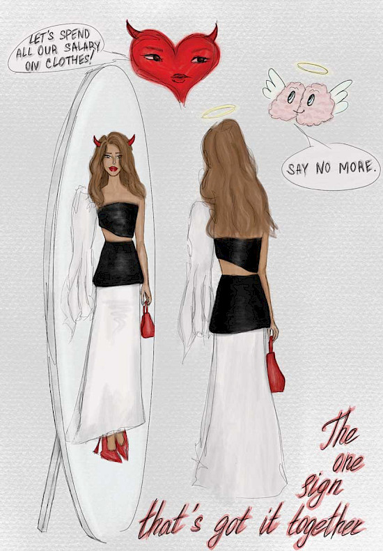 Unlock the celestial secrets of style with dazzling fashion illustrations by Nazrin Samir, designed to captivate the hearts of every zodiac shopaholic.