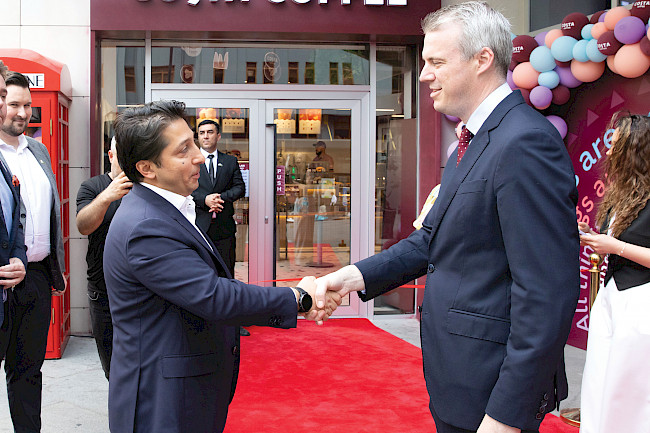 Rauf Khalilov, CEO of ISR Holding, Louise Bray, head of Marketing at EMENA Retail Costa Coffee, and Jamie Awdry, head of franchise, spoke at the grand opening of the coffee shop. They thanked all the guests for their presence, wished them a pleasant pastime and narrated about the history of the brand, sharing interesting facts. In particular, all coffee beans and cocoa beans used by Costa Coffee are purchased exclusively from Rainforest Alliance certified farms; great importance is attached to environmental friendliness. So coffee shop visitors can be sure: by choosing the Costa Coffee brand, they are supporting eco-friendly farms!