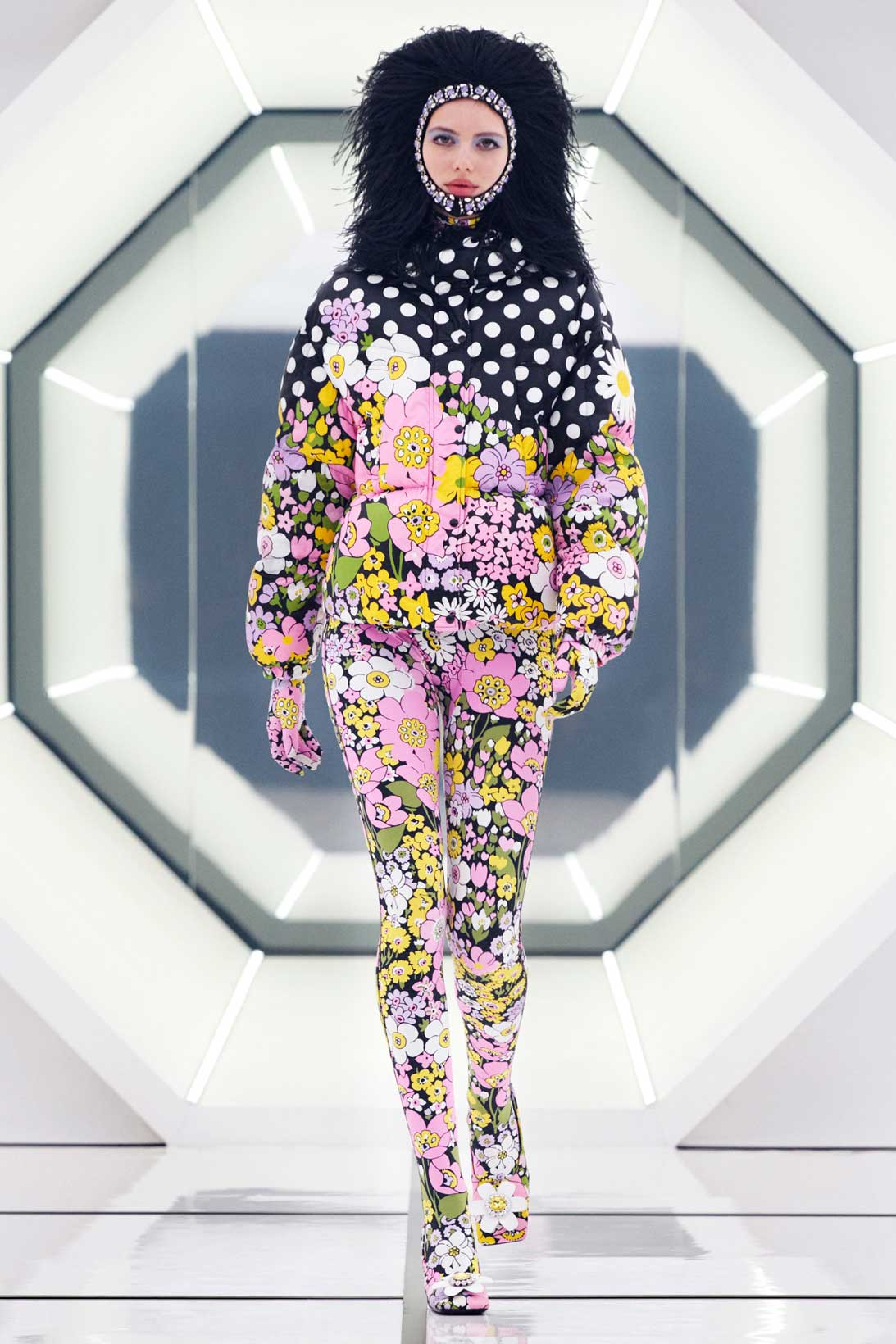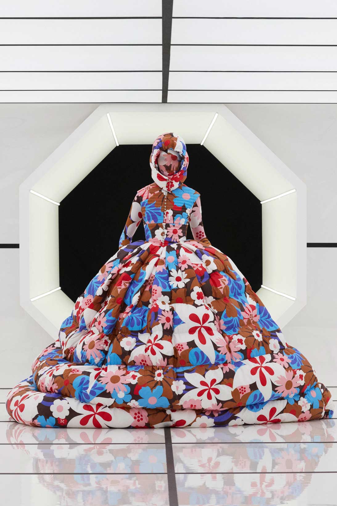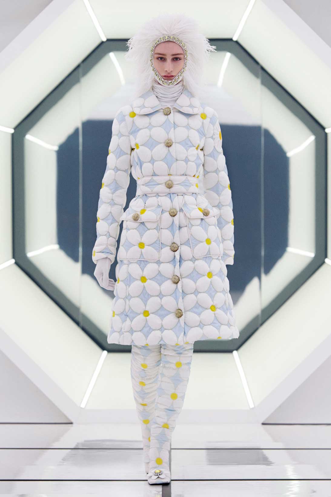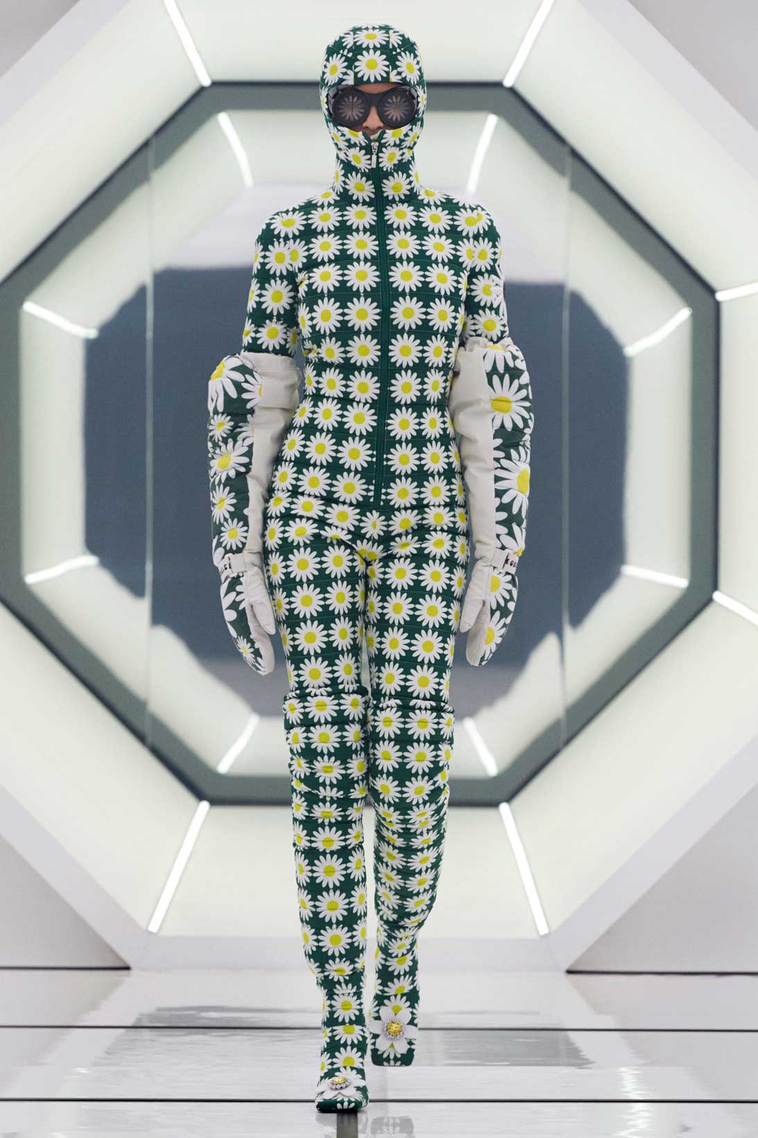 Восьмая из 12-ти коллекций, представленных Moncler Genius, родилась в коллаборации с дизайнером Ричардом Куинном. Специально для нее была создана комната в духе «Космической одиссеи 2001 года» Стенли Кубрика, а сами образы – расшитые или разрисованные цветами с ног до головы – объединяли в себе sci-fi 60-х с узнаваемой эстетикой Куинна.