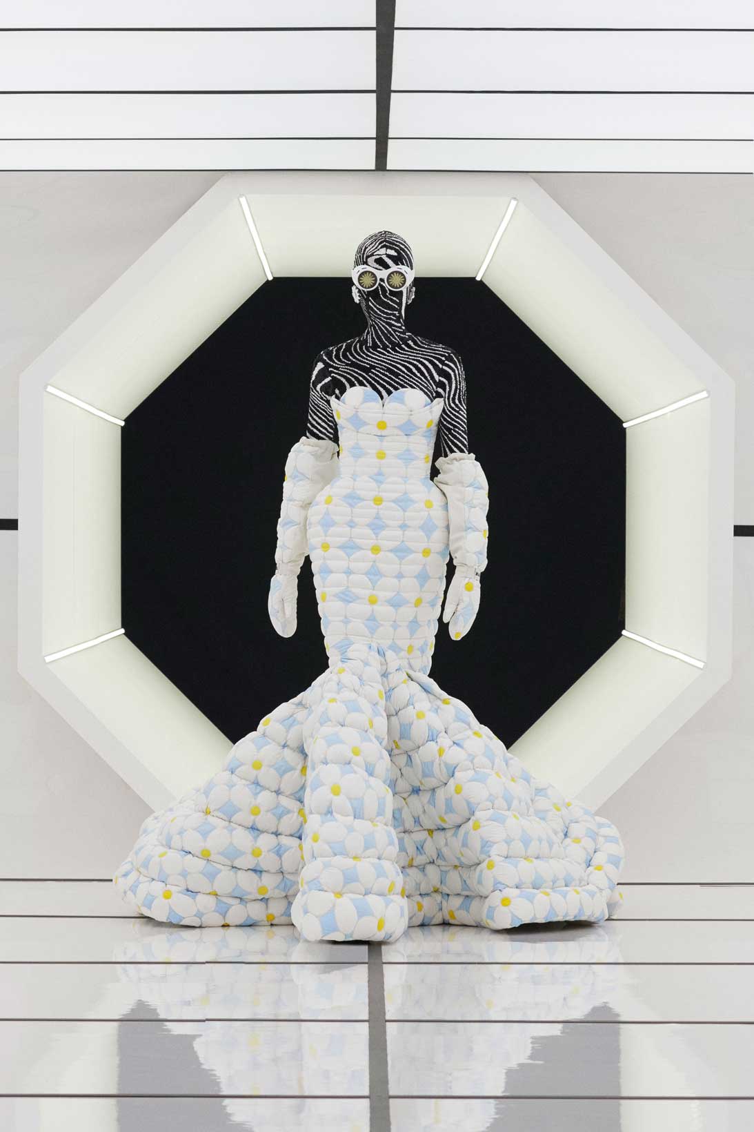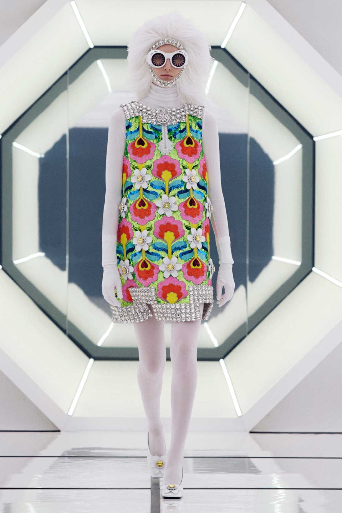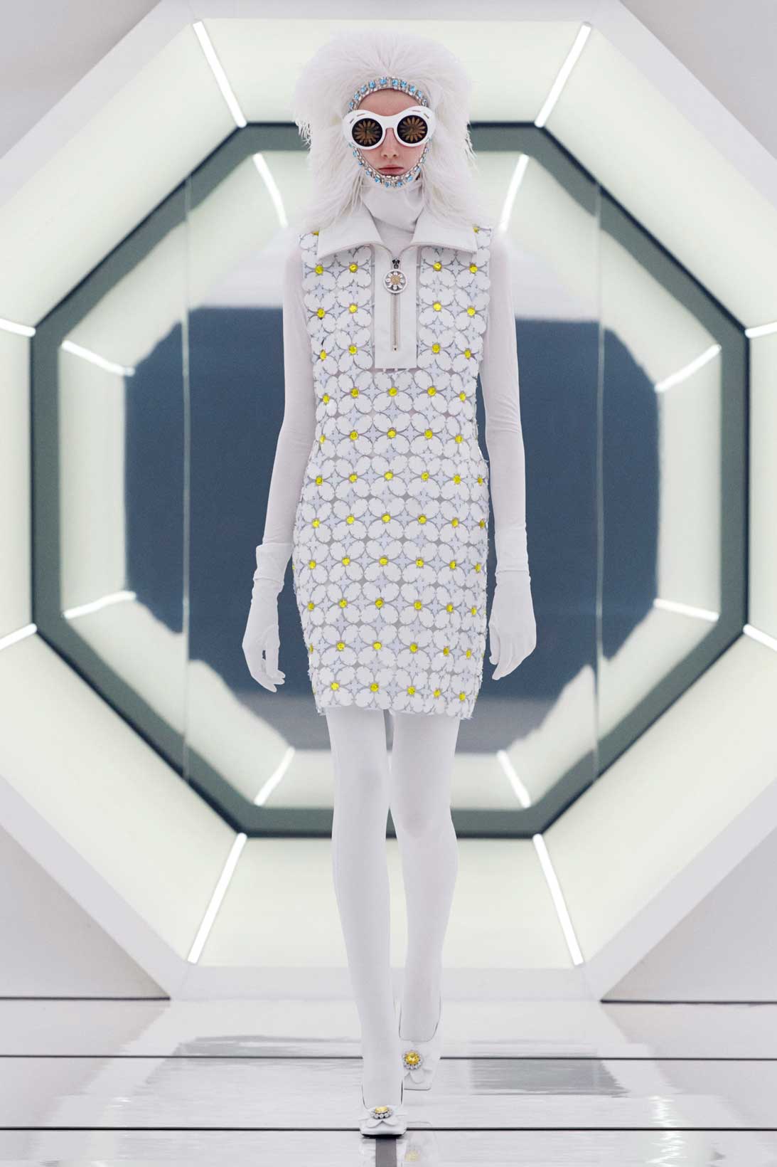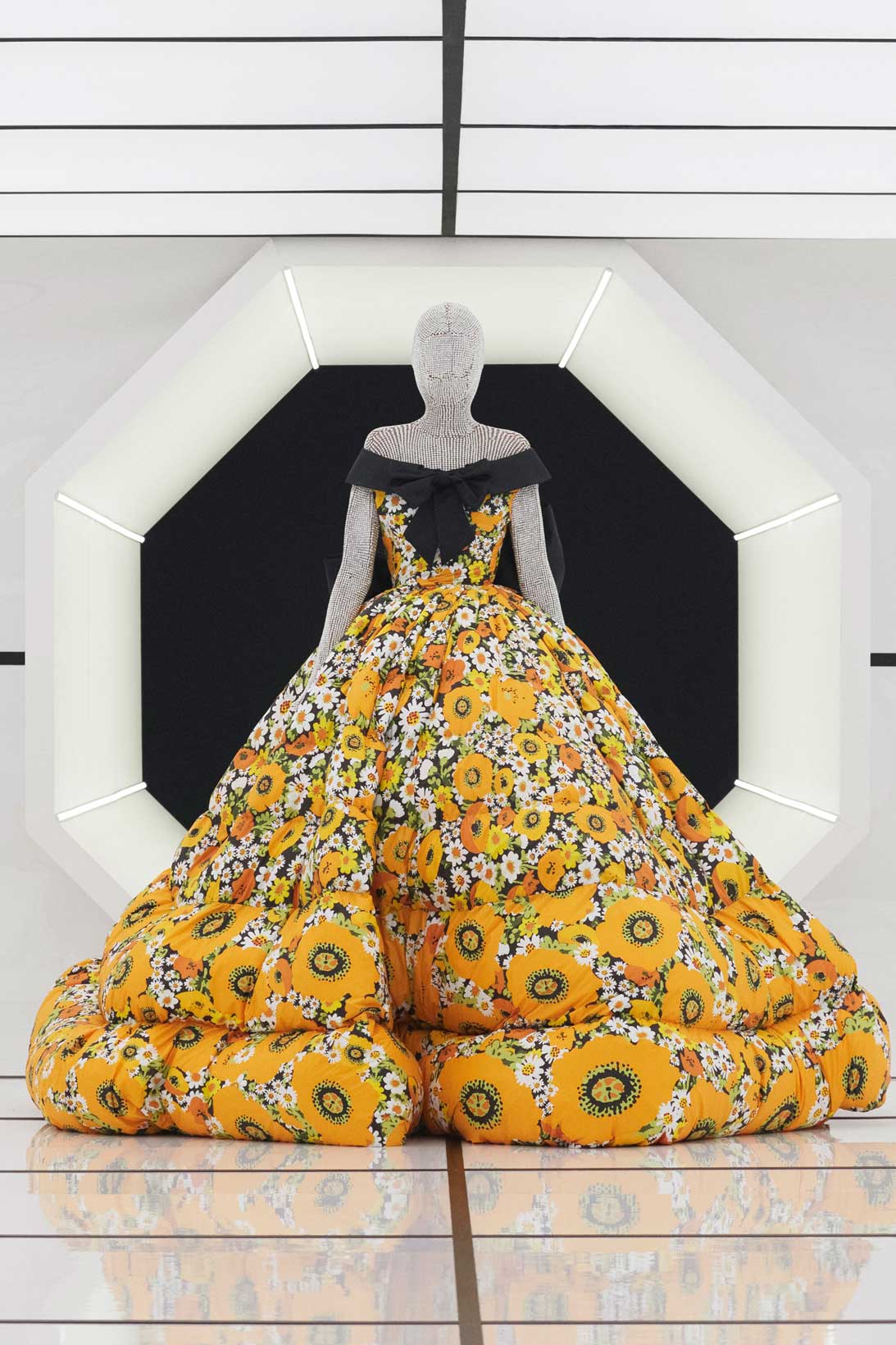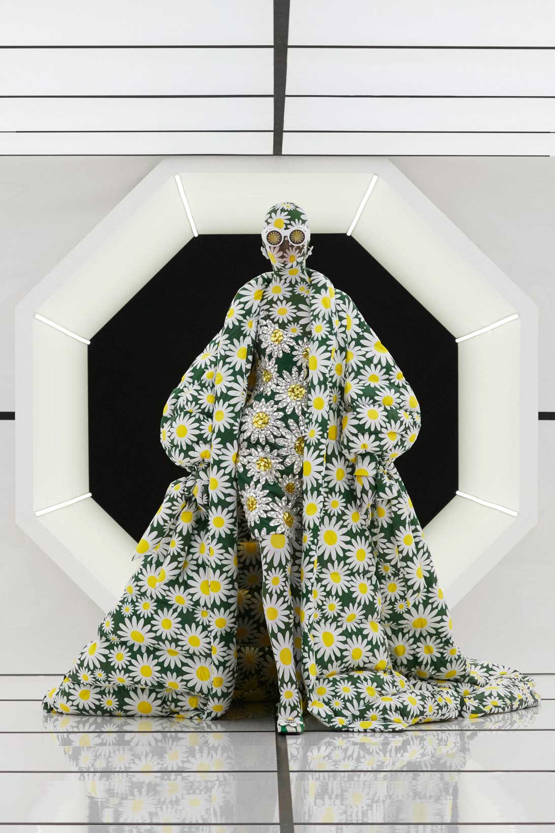 Восьмая из 12-ти коллекций, представленных Moncler Genius, родилась в коллаборации с дизайнером Ричардом Куинном. Специально для нее была создана комната в духе «Космической одиссеи 2001 года» Стенли Кубрика, а сами образы – расшитые или разрисованные цветами с ног до головы – объединяли в себе sci-fi 60-х с узнаваемой эстетикой Куинна.
