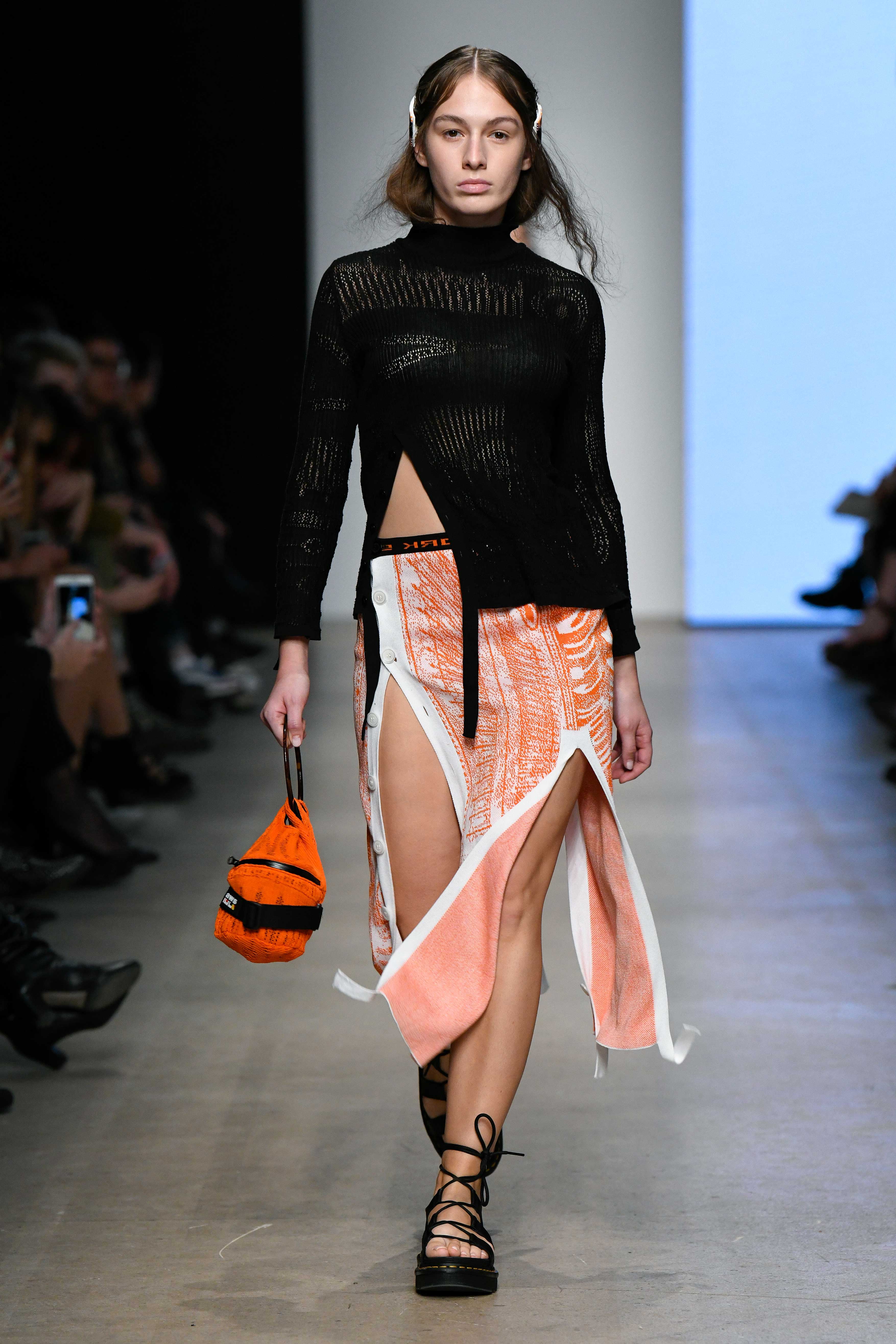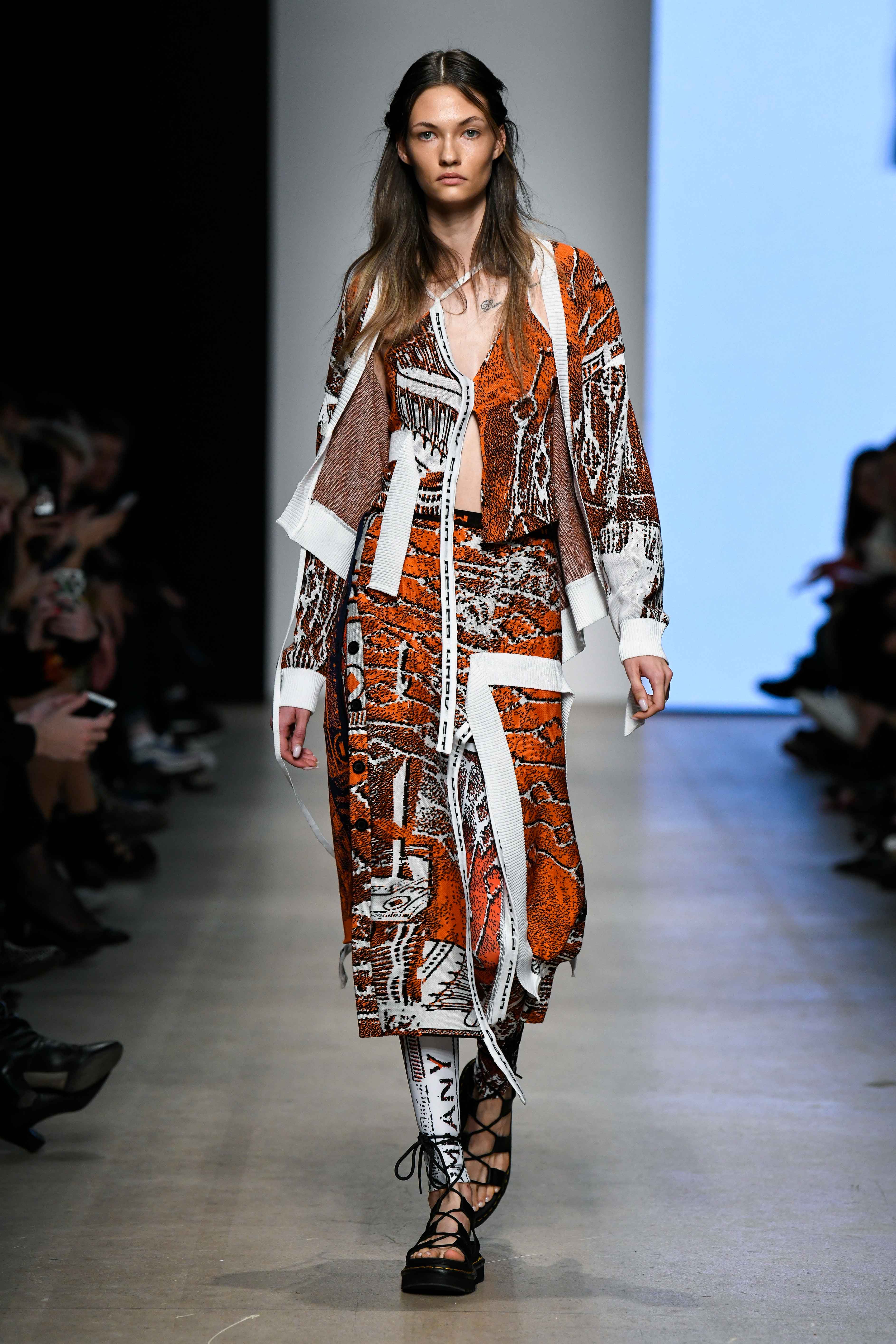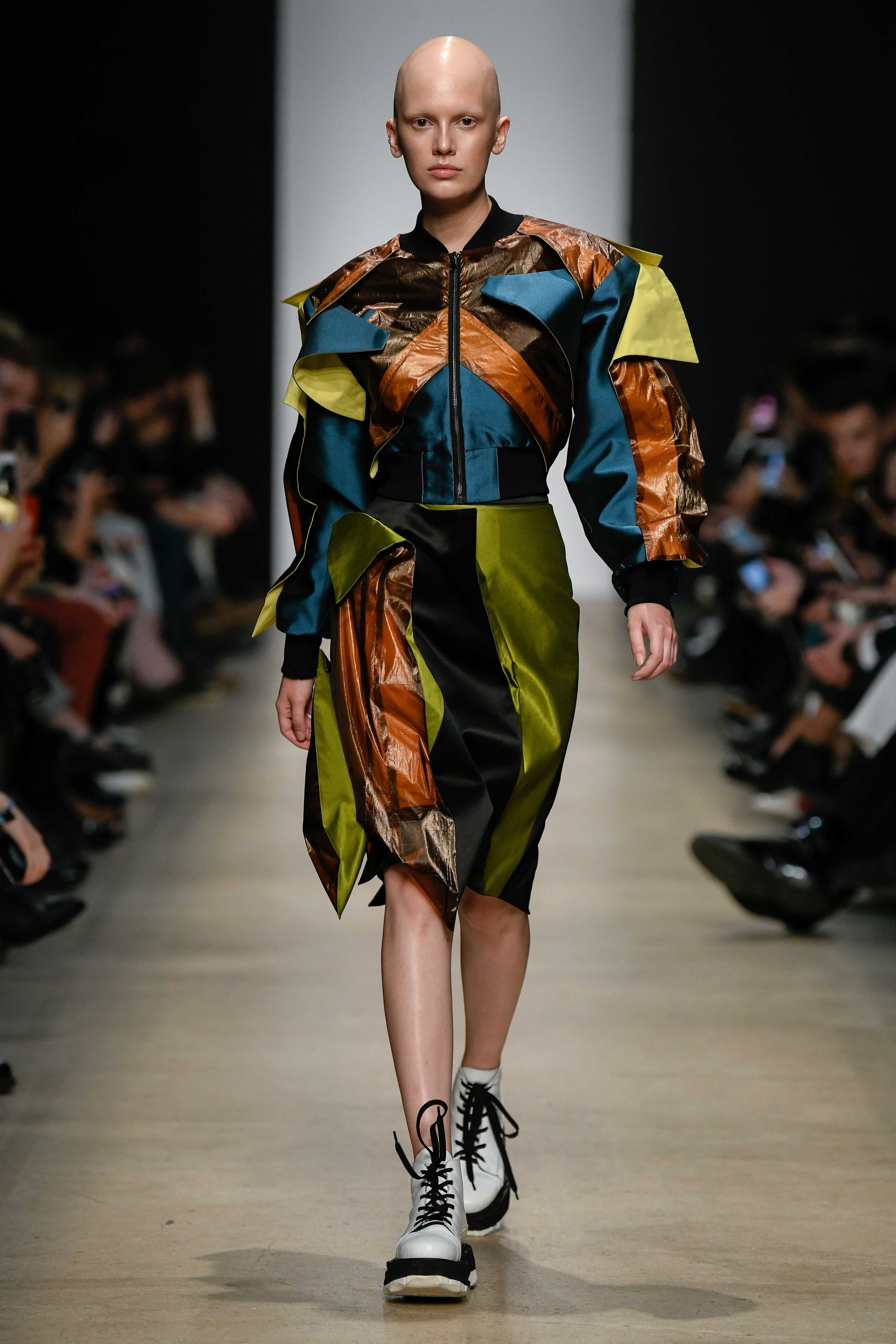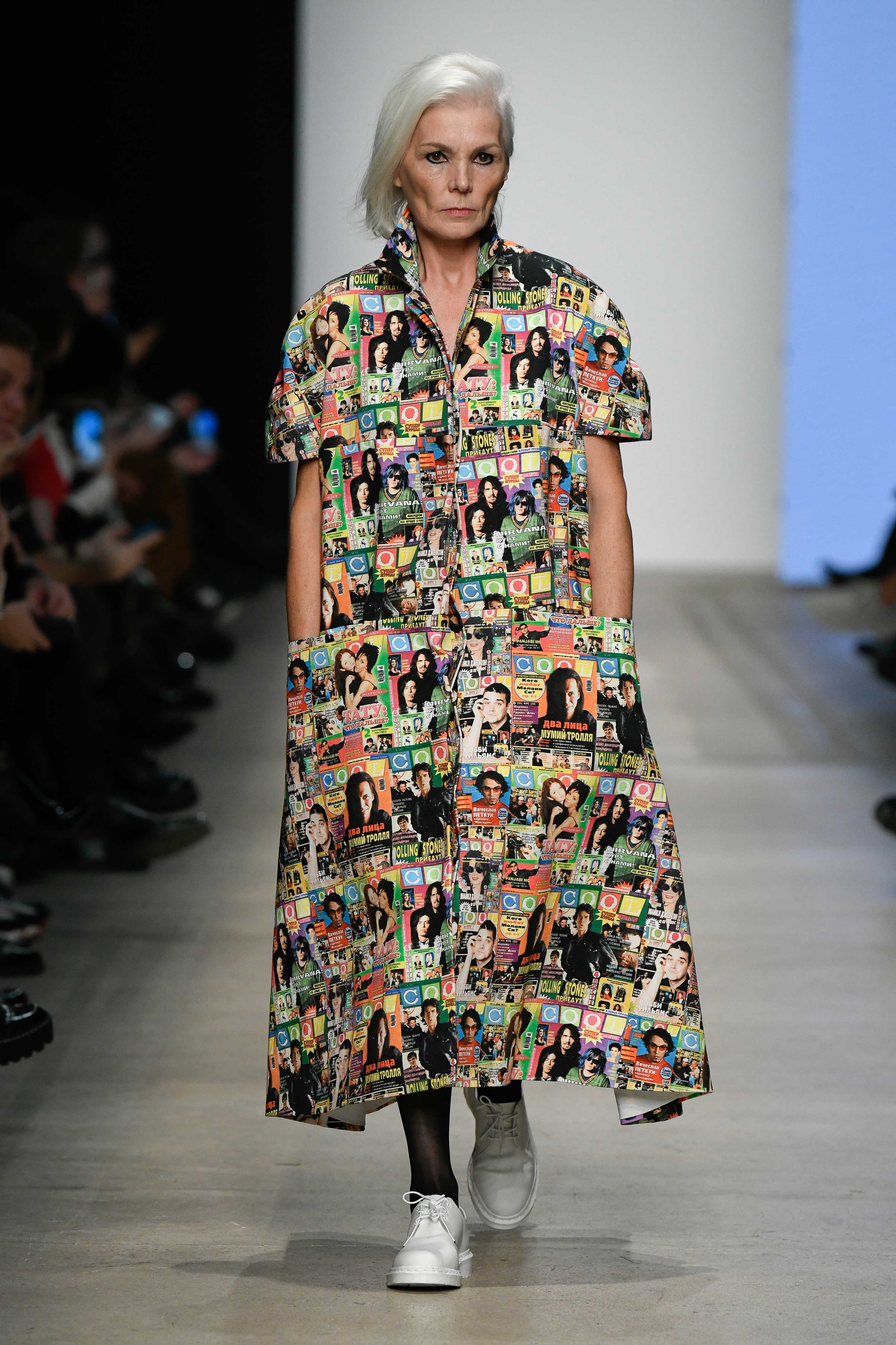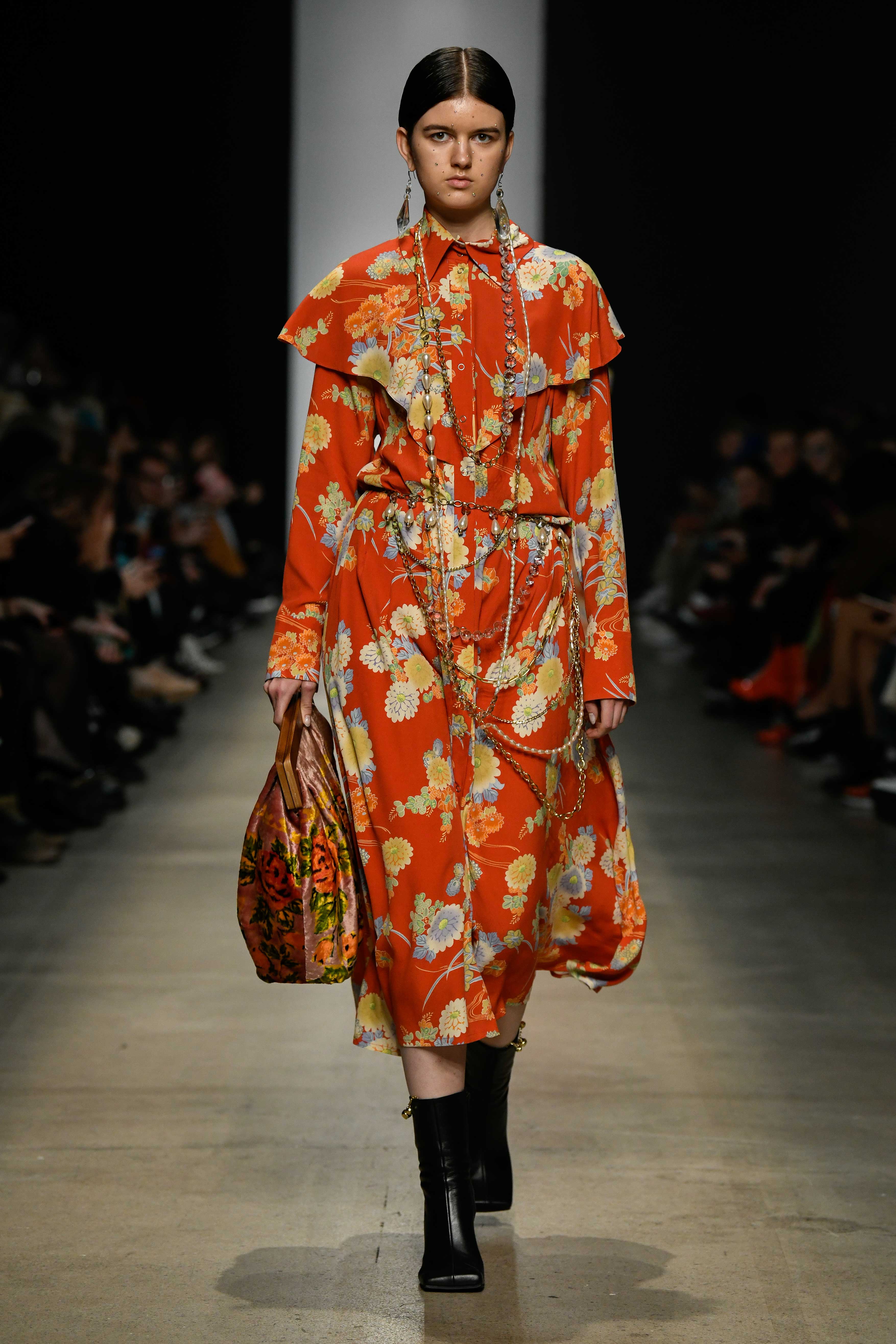 Бренд продолжает экспериментировать, приглашая к участию в показе возрастных моделей. Так, в этот раз модель-мужчина примерил образ в стиле кэжуал, состоявший из грубых ботинок, пальто oversize-кроя и шарфа. В основе коллекции – утилитарные вещи, подходящие для современного поколения, которое так любит авангардное индивидуальное звучание. Сюда вошли безразмерные пальто и тренчи с принтами в виде рисунков и портретов и дутые жилетки-шарфы – все в приглушенных оттенках. Фаворитами сезона стали пастельный розовый, черный, белый и серый.