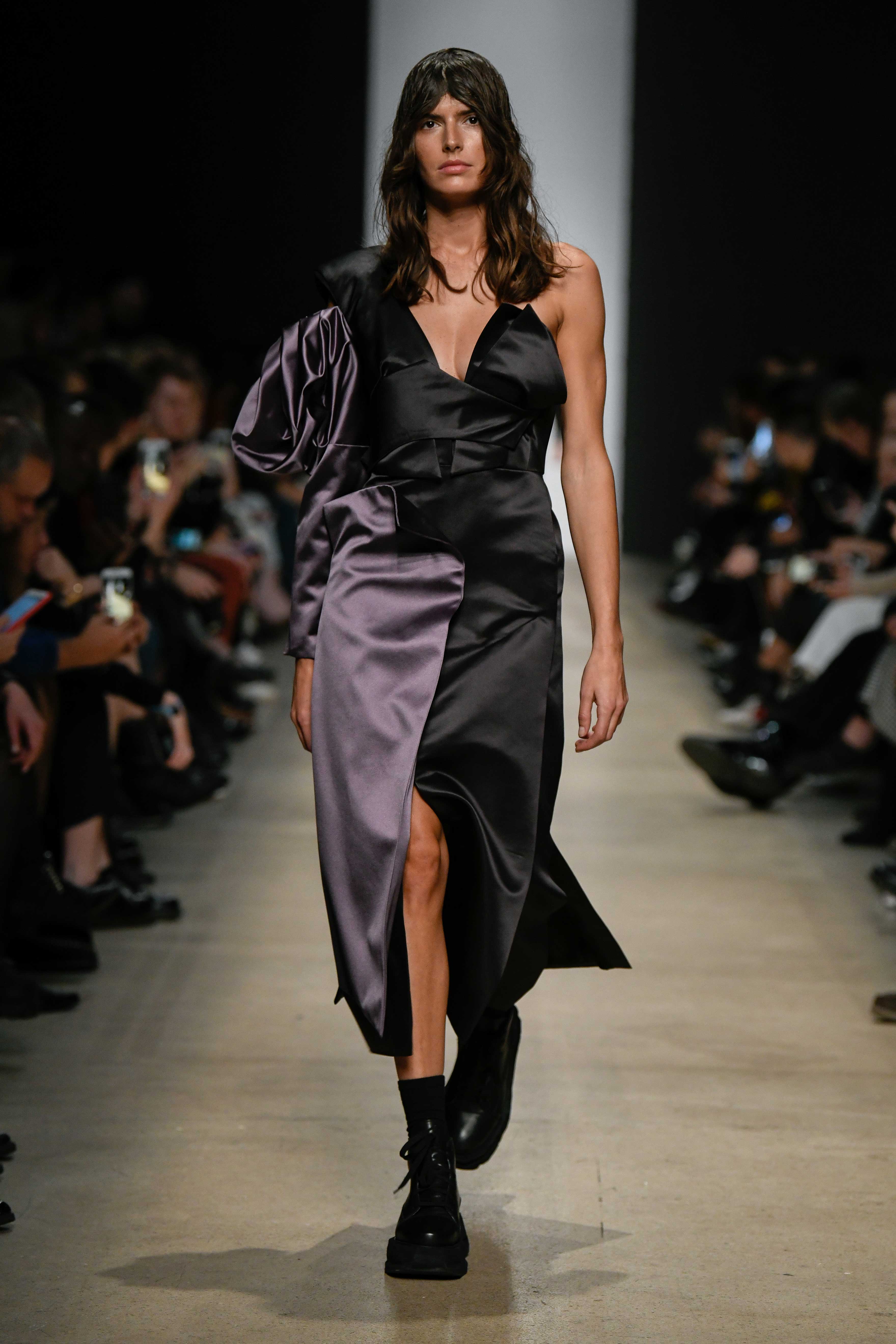 Оверсайз-жакеты и пальто, комбинезоны, платья-пиджаки, куртки с объемными воротниками – все угловатые, грубоватые и необычные, привычные для бренда. Основные цвета коллекции: черный, металлик, красный, но нашлось место и для нетипичных вариантов – фиолетового, желтого, синего или пыльного розового.
