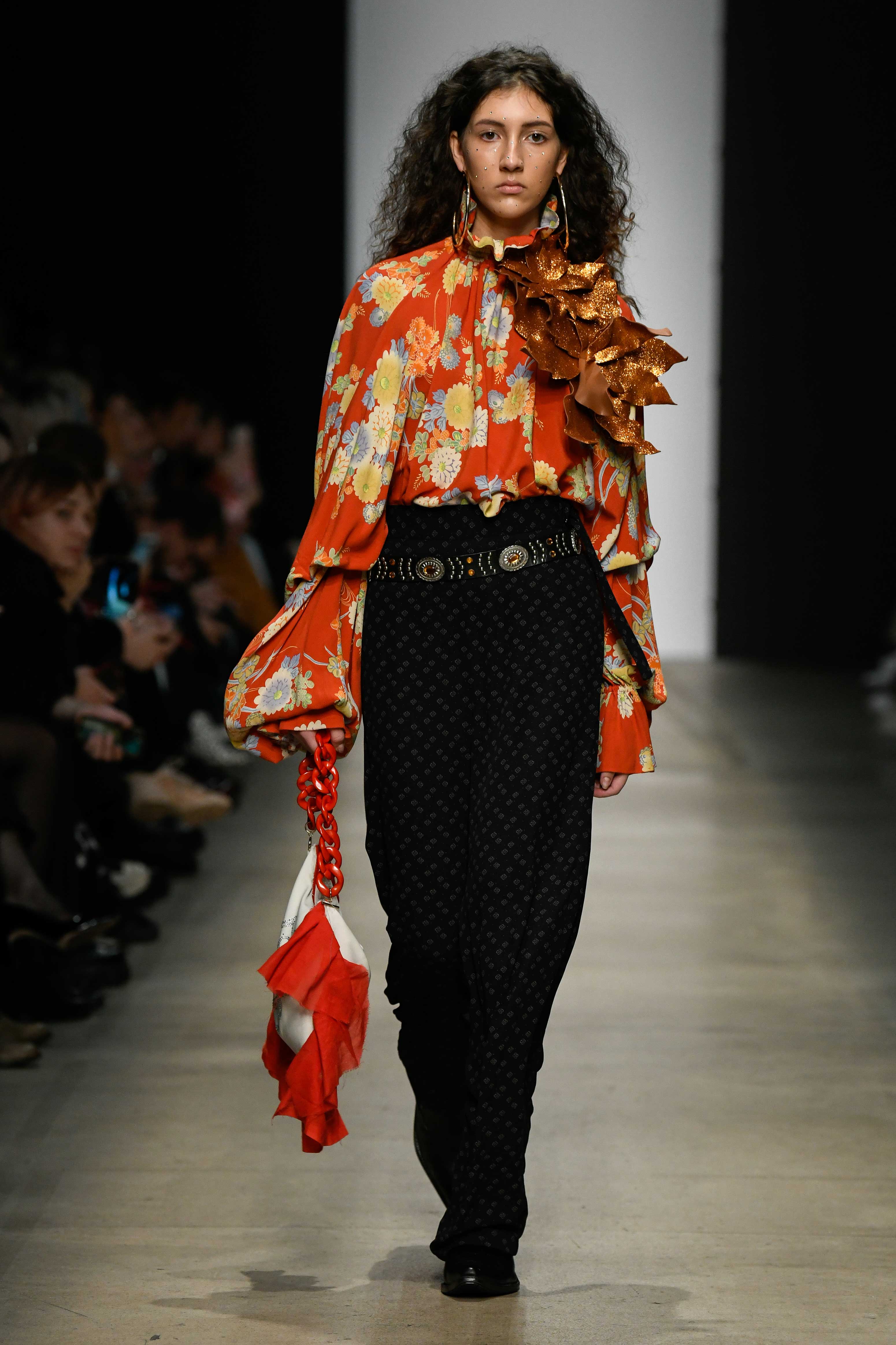 Новая коллекция Roma Uvarov Design называется «Время цыган». Это читается в каждом образе: цветы на принтах и в деталях, гигантские сережки-кольца, оборки, гадальные карты и фурнитура из монет и цепей. Летящие прозрачные ткани и силуэты оверсайз подчеркивают вольный и свободный дух цыган. Цветовое решение – все оттенки красного: алый, бордовый, рубиновый.