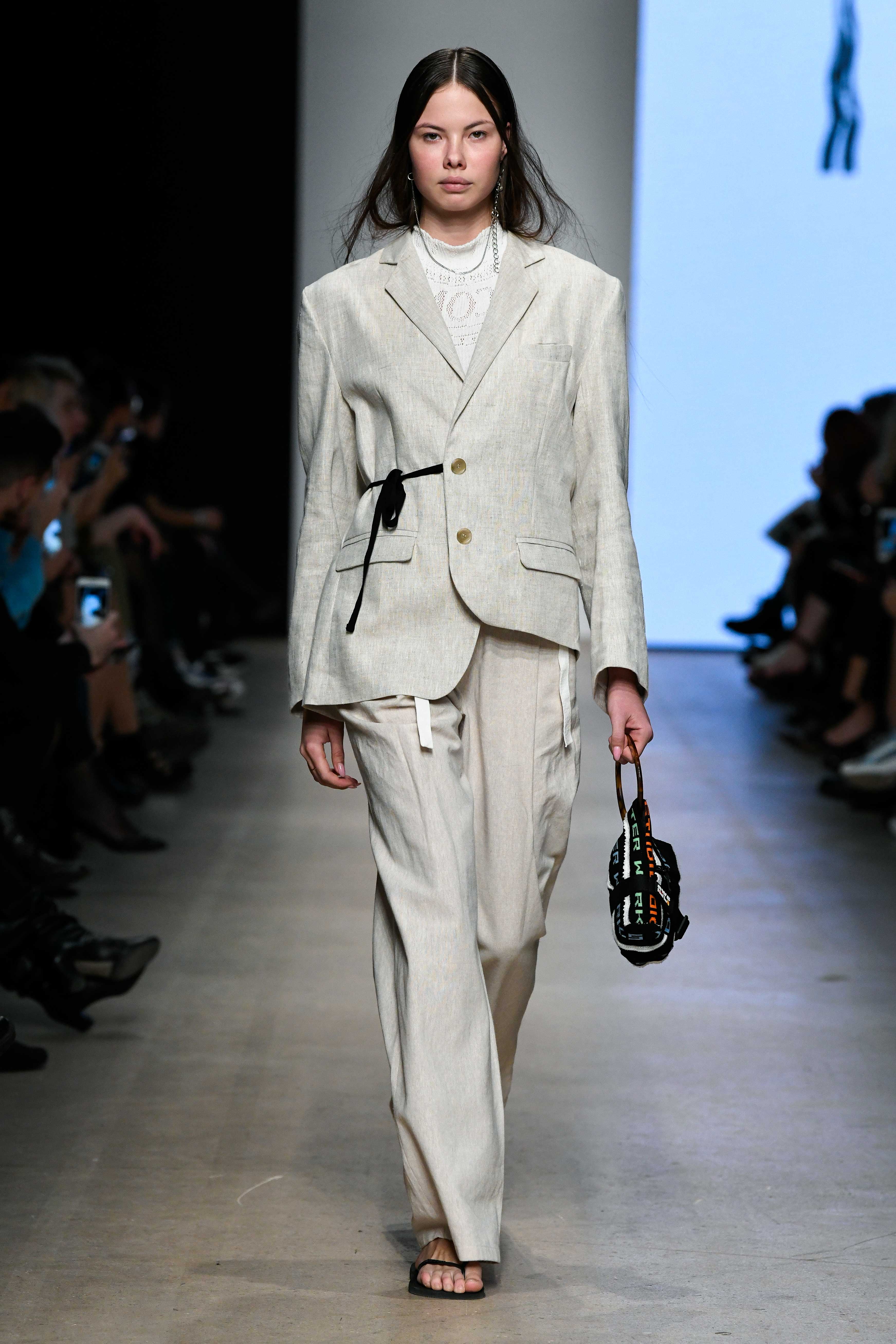 Бренд мужской одежды Innominate в рамках этой Недели моды впервые представил женские образы – переосмысленные классические предметы гардероба обоих полов, лаконичные и очень качественно выполненные. Маскулинность широких брюк и объемных пиджаков уравновешивается пастельными тонами. Интересно выглядят широкие манжеты на брюках и шортах, а также панамы и кепи из фетра.