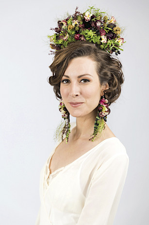 Twelve years ago, I saw a picture in a design book of a beautifully set table in a home in Paris. On each plate was a wonderful botanical purse as a gift from the hostess. They all were different and they really struck my fancy. I figured out how to make them and sold a lot of them for flower girls. Next, I was inspired by pictures of beautiful flower shoes in a book by Michel Tcherevkoff called Shoe Fleur: A Footwear Fantasy. It is a gorgeous book of a selection of virtual botanical shoes and purses. Curiosity drove me to figure out how to design botanical shoes. A couple of years later, a local photographer asked me to do a botanical headpiece for a photoshoot, and I figured out how to make one. Nine years later, we still do several photoshoots a year on botanical headpieces. In 2013, a student asked me how to make a botanical ring, and curiosity once again drove me to explore botanical jewellery.