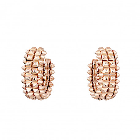 И вот наступило лето 2022 – и Clash de Cartier снова радует нас пополнением ассортимента. Кольцо и серьги из розового золота с закругленными шипами отчетливо демонстрируют бескомпромиссную панк-эстетику. Знаковая линия элементов clou carré теперь стала двойной, сдвоенный ряд центральных элементов формирует объем и притягивает взгляды. Их осязаемость побуждает к озорству и кокетству, а игра с текстурными повторами создает гипнотизирующий, интенсивный ритм.