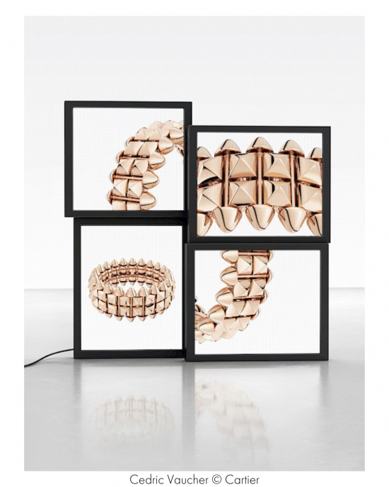 За простой и элегантной композицией Clash de Cartier стоит сложный дизайн. За четкими линиями, за хитроумным шарнирным механизмом, позволяющим плотно соединенным деталям оставаться мобильными, скрыты сложнейшие ухищрения ювелирного мастерства. Каждый элемент тщательно крепится и полируется, каждый этап работы требует особой техники, индивидуального подхода. Например, полировка сlou сarré производится в несколько этапов. Все изделия Clash de Cartier скрупулезно откалиброваны для уравновешивания всех