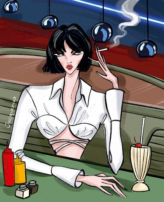 Вдохновения для меня – это постоянный ежедневный поток, я его не ищу специально, меня вдохновляет абсолютно все вокруг. Архитектура, искусство, природа, кухня, мода, и конечно же, кинематограф. Для Nargis я нарисовала серию иллюстраций по мотивам нескольких моих любимых фильмов. Для каждой иллюстрации я подобрала похожие по стилю и силуэту образы, используя последние коллекции современных дизайнеров и модных домов. Я старалась выдержать весь антураж определенного фильма, придерживаясь цветовой палитры и подбирая моделей, похожих на главных героинь этих фильмов. Это был очень интересный опыт, я обязательно продолжу эту серию.
