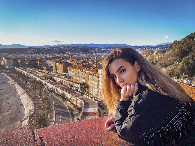 Еще до того, как я начала работать в журнале Nargis, я с интересом следила за проектом Travel Blog и в глубине души всегда хотела оказаться на месте ведущего. Мне казалось: уж я-то с легкостью сниму отличный ролик! И вот мне предложили попробовать себя в роли блогера и сделать репортаж, да не где-нибудь, а на моем любимом Лазурном берегу! Но оказалось, говорить на камеру не так-то и легко. Приехав на Лазурный берег, мы начали снимать достопримечательности города Ницца. Первая в списке − Английская набережная − оказалась полна людей, что, впрочем, типично для этого места. Люди махали руками, заглядывали в кадр, сигналили... А когда мне надо было перейти улицу, я не знала, что делать: говорить в камеру или следить за дорогой, чтобы меня не сбила машина. Но все это делалось с большим вдохновением и позитивом!
