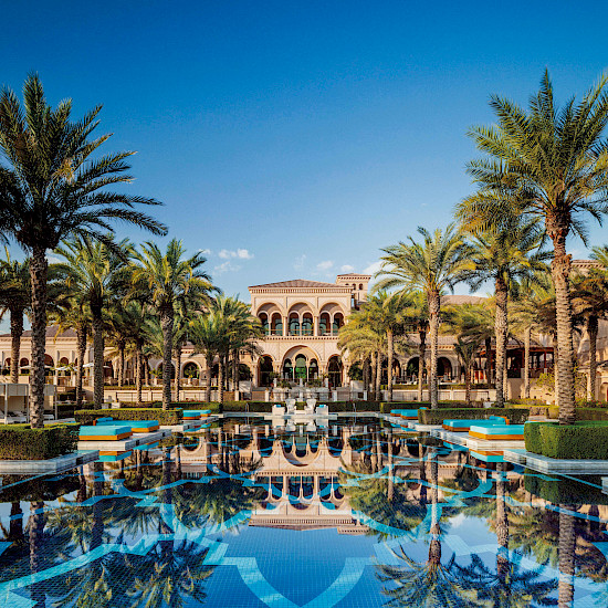 Resting on a kilometre of private coast overlooking The Palm and nestled within 65 acres of lush landscaped gardens, One&Only Royal Mirage Dubai is arranged into three distinct environments - The Palace, Arabian Court and Residence & Spa, each complementing each other in a celebration of Arabic design, heritage and warm hospitality.