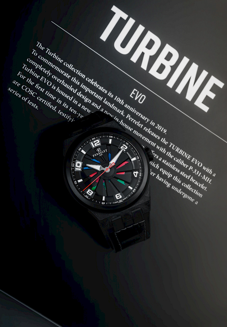 Основанная в 1777 году, мануфактура Perrelet соединяет историческое наследие и инновации. Коллекция Turbine, запатентованная в 2009 году, стала для бренда полем для творческих экспериментов. В новой модели вращающиеся лопасти турбины из чёрного анодированного алюминия открывают изображение флага, создавая эффект динамики и глубины.