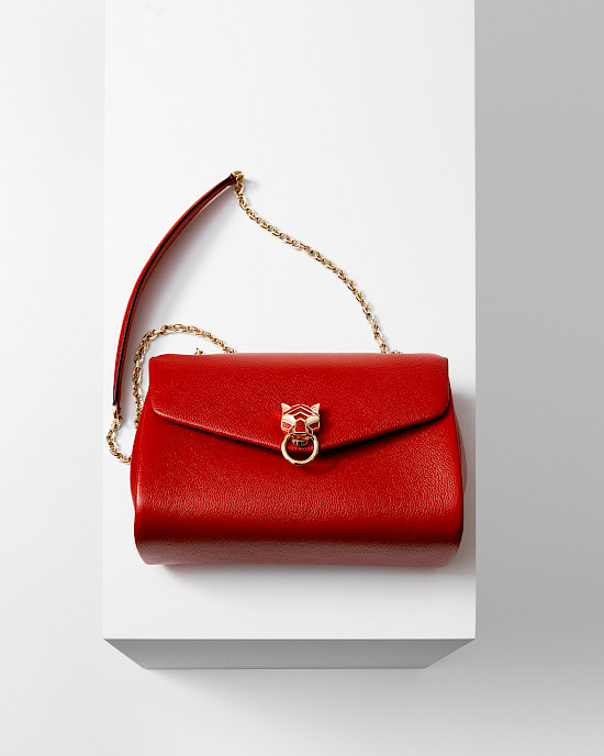Изысканная Panthère de Cartier снабжена металлической цепочкой для ношения на плече, отделанной золотом или палладием. Panthère de Cartier устойчива к царапинам благодаря материалу – телячьей коже – и зернистой текстуре, выбранной самим Марлином Юсоном, директором по дизайну аксессуаров и кожаных изделий. Модель представлена в богатой цветовой палитре: доступны модели черного, темно-синего, красного, бледно-желтого, кремово-белого, бежевого цвета, а также оттенка морской волны. Аксессуар не только красив, но и практичен, поскольку вместителен и оснащен удобными отделениями и карманами, даже зеркальцем. Словом, новая сумка Panthère de Cartier – это незаменимый предмет обихода, идеальное воплощение роскоши и универсальности.