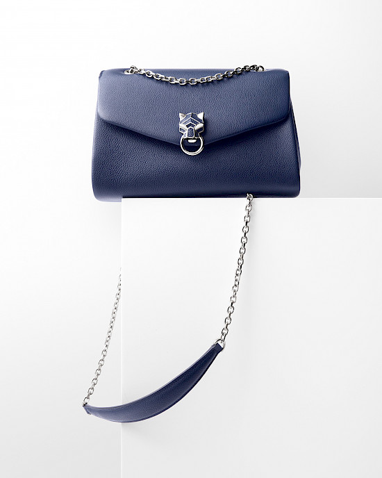 Новая сумка Panthère de Cartier возвращает нас во времена, когда домом Cartier создавались вошедшие в историю моды изделия для знаменитостей. Силуэт новинки вдохновлен гибким, изящным обликом грациозной пантеры – ни острых углов, ни видимых швов, исключительно плавные изгибы. Дерзкий характер сумке придает крупная застежка, чья форма была создана в сотрудничестве со скульптором отдела высокого ювелирного искусства. Голова хищницы выполнена из металла золотого или серебристого отлива и украшена одиннадцатью кожаными вставками в цвете изделия.