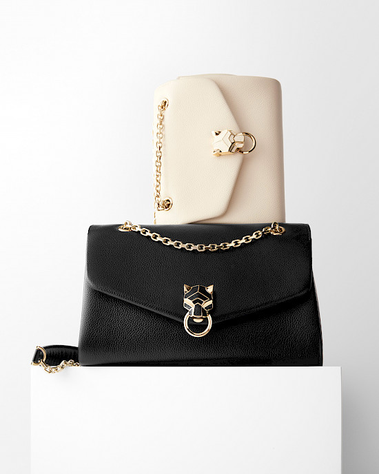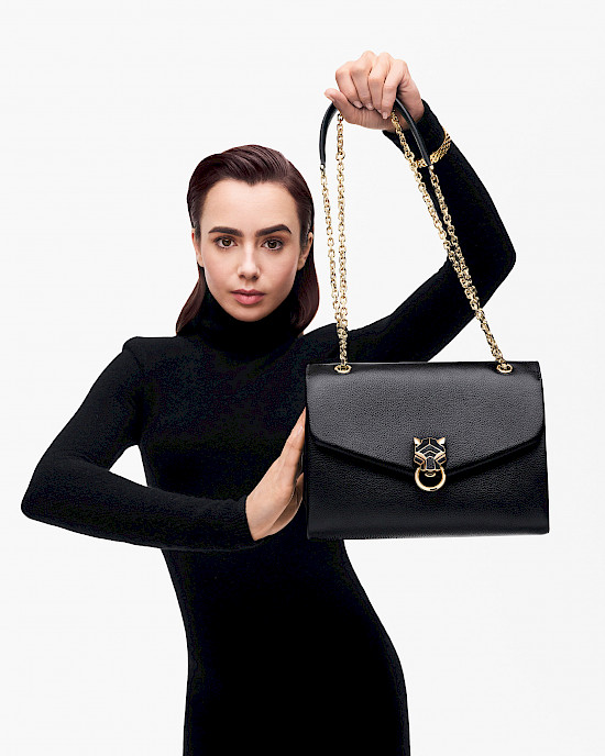 Французский ювелирный дом Cartier выпустил коллекцию сумок Panthère de Cartier, соблюдая верность одному из своих символов – пантере, с легкой руки Жанны Туссен, превратившейся в талисман бренда.