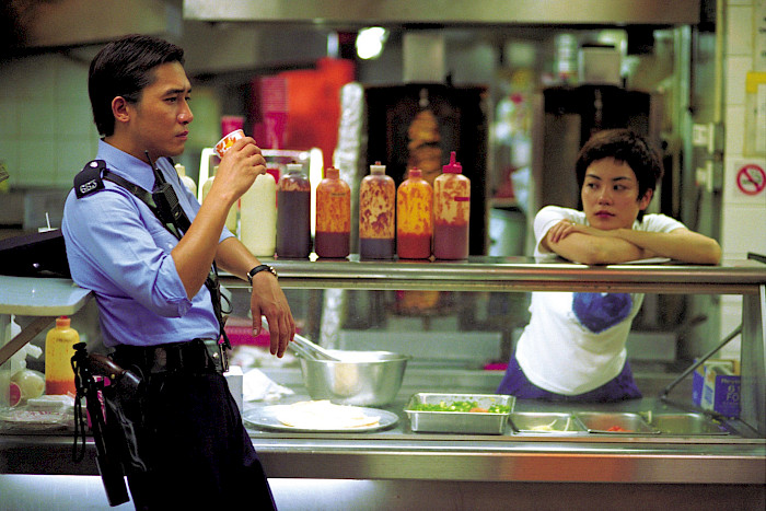 Действие фильма разворачивается в двух взаимосвязанных историях, действие которых происходит в "Полуночном экспрессе", закусочной в особняке Чунгкинг. Эта обстановка служит одним из мощных инструментов Вонга Кар-Вая, позволяющих погрузить зрителя в хаотичную атмосферу Гонконга. Для Вонга этот хаос не ограничивается внутренними переживаниями персонажей, он усиливает эмоциональные тона, как и роль еды. В его изображении еда выглядит обыденной, стремясь подчеркнуть контраст между внутренним и внешним. Обычные банки с ананасами отражают глубину чувств Хэ Циву (Такеши Канеширо). Точно так же мороженое, купленное женщиной в парике (Бриджит Лин) для похищенного ею ребенка, изображает материнскую заботу, несмотря на ее криминальные делишки. Оба героя переживают потерю. Осторожный нарушитель закона в солнцезащитных очках и плаще, не знающий, когда засияет солнце или пойдет дождь, и полицейский, покупающий консервы с одинаковым сроком годности, скорбящий о разлуке с любимой. В итоге их пути пересекаются в баре, и они проводят ночь вместе, не представляясь, чтобы выяснить личности друг друга. Символично, что он чистит ее ботинки, пока она спит, как бы воплощая букву закона, он прощает свою ушедшую любовь – зеркально отражая выбранный жизненный путь неизвестной женщины в парике, которая уходит под утро.