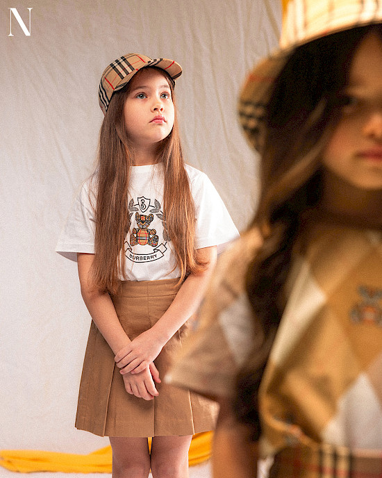 Banu: clothing DOLCE & GABBANA KIDS/Leyla: T-shirt, hat, shoes BURBERRY KIDS, shorts GUCCI